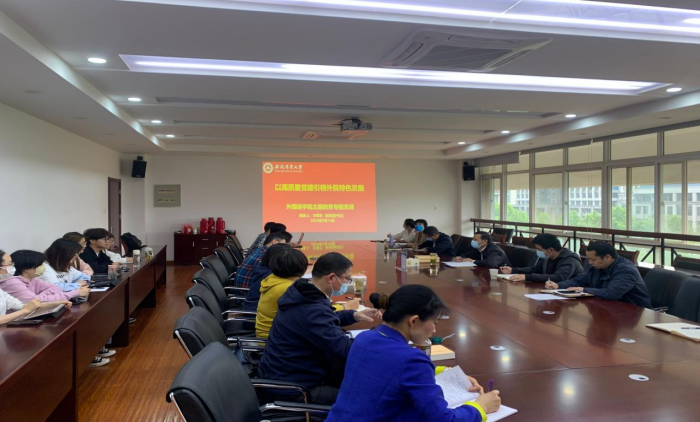 本网讯 为深入开展学习贯彻习近平新时代中国特色社会主义思想主题教育,根据学校主题教育理论学习方案安排,5月10日,院党委书记方章东以《以高质量党建引领外院特色发展》为题,为学院党委理论中心组成员、系部、支部负责人、科级干部、支部委员、教师和学生党员代表讲授专题党课,校党委主题教育第二联络组联络员列席会议。