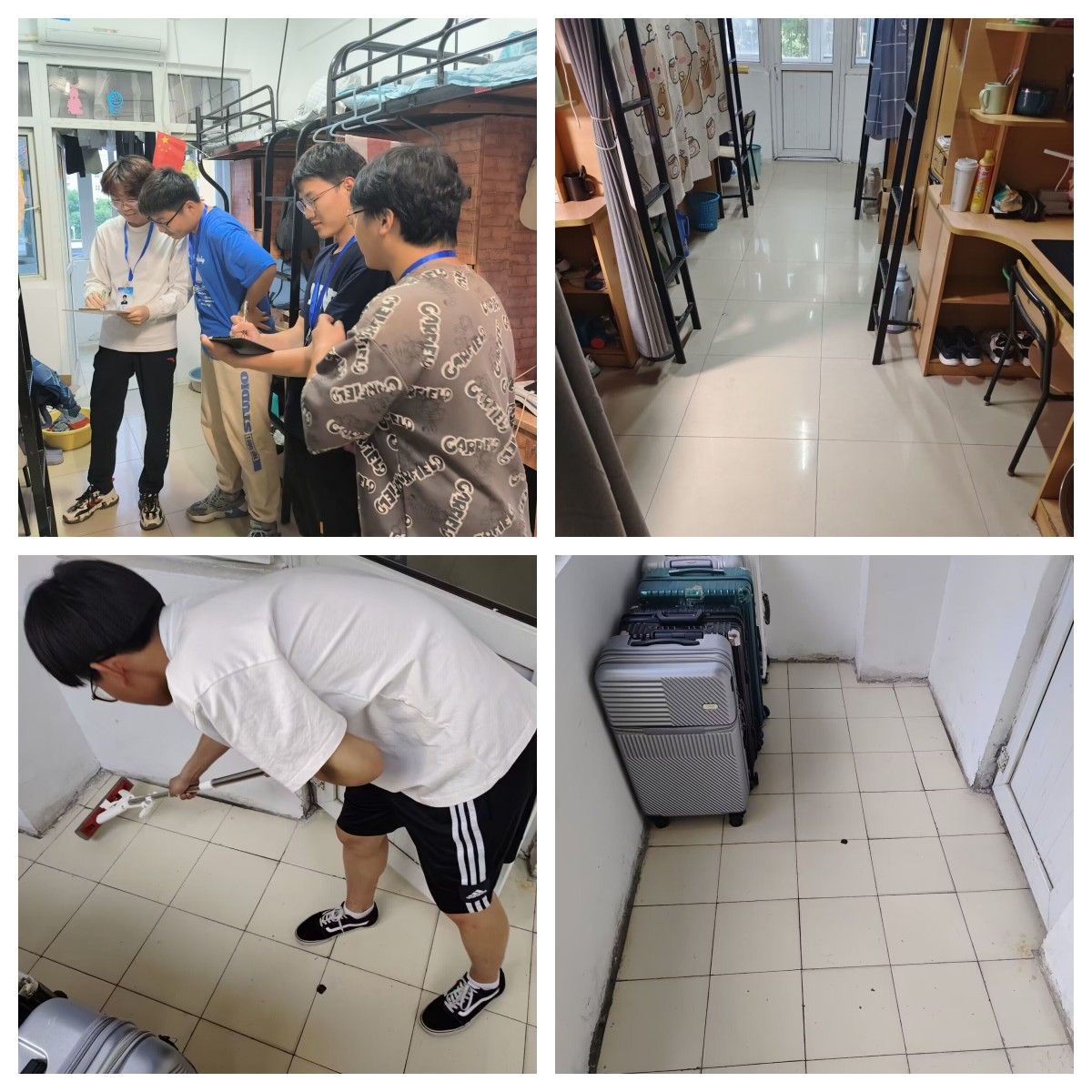 协力创净,树立文明,共创美丽环境。为培养学生的卫生意识和责任感,营造整洁的宿舍环境,让学生深刻认识到宿舍卫生的重要性,并提高对卫生的关注与维护。学院组织全体学生参与宿舍卫生大扫除,学生们参与其中,以集体行动的形式推动宿舍环境的整洁。学生们积极投入,协作完成各项清扫任务,彻底清除了宿舍中的污垢和杂物。通过共同努力,宿舍环境焕然一新,展现出整洁有序的样貌,为个人的健康和学习提供了良好的条件,为学院营造了良好的学习和生活氛围,进一步提升了校园文明建设的水平。
