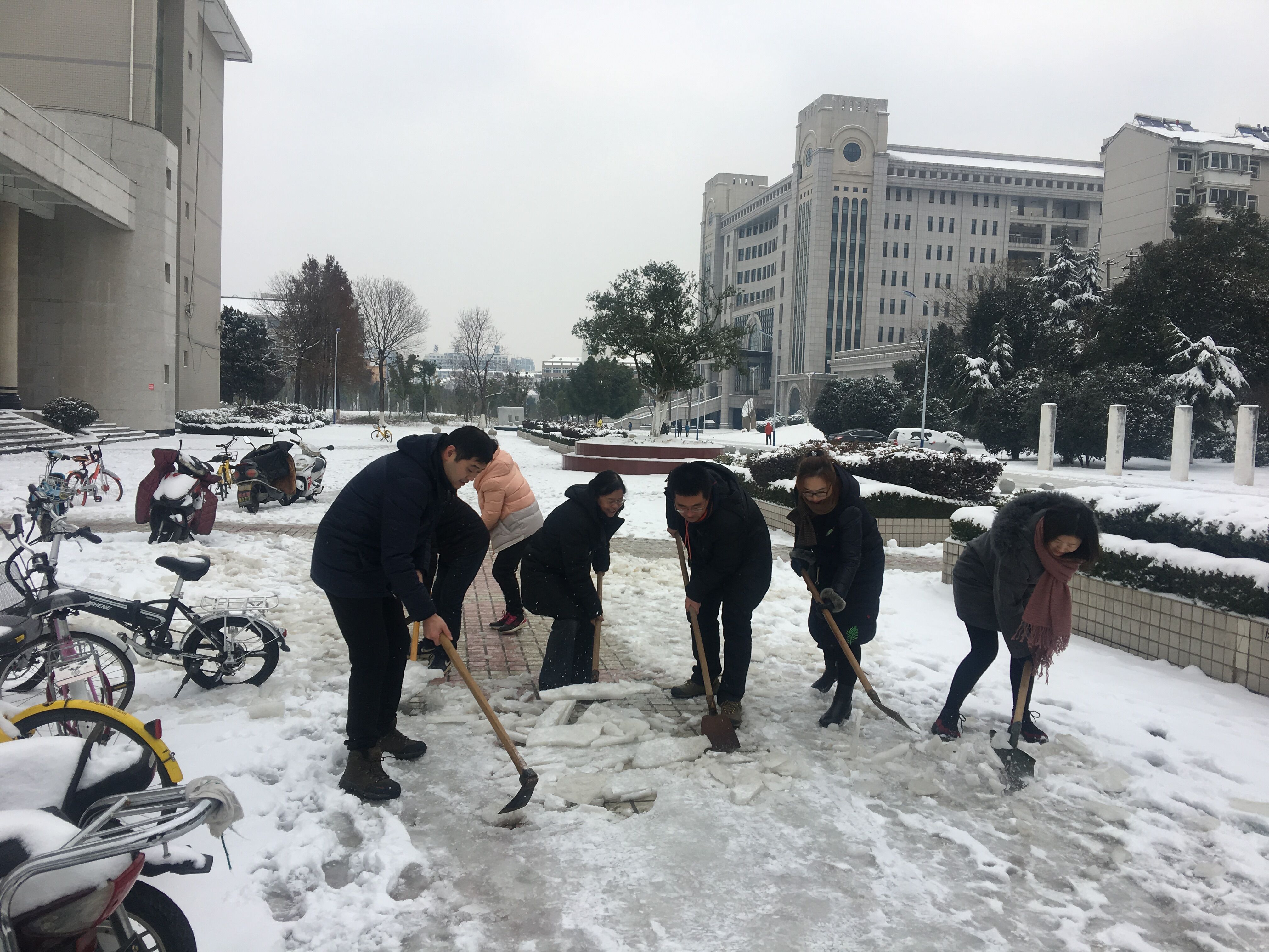 按照学校关于做好雨雪冰冻天气防范应对工作的紧急通知要求,1月26日上午,农学院迅速行动、积极组织教职工针对九、十教楼下等公共区域清除地面积雪、铲除湿冰。虽然天气湿冷,但大家热情高涨,携带铁锹、铁锨等工具,经过一个小时的努力,打通了两条干净、整洁的便民之路,方便了学校师生的出行,及时消除道路湿滑的安全隐患。(郑青 通讯员:彭琼琼)