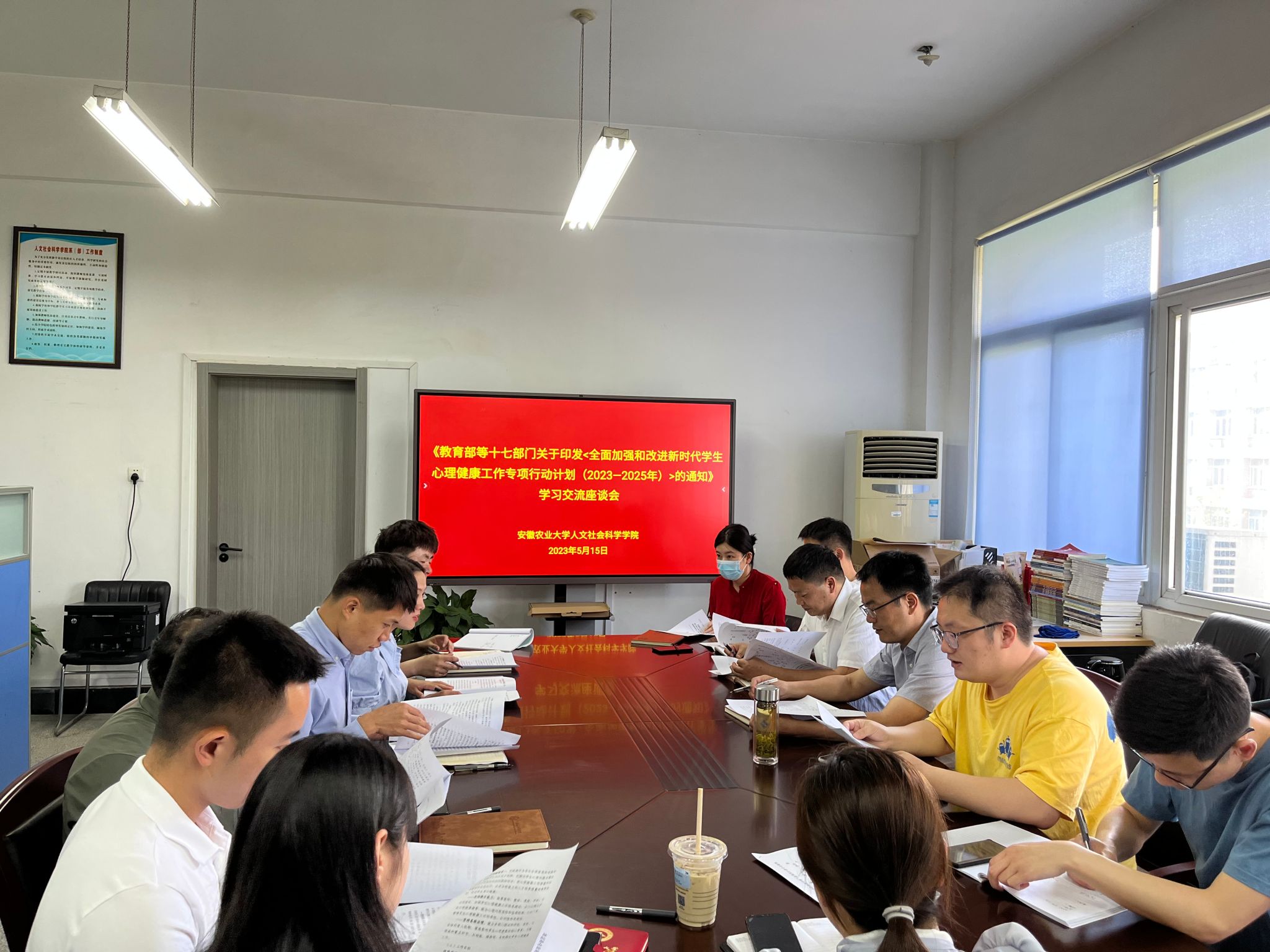 本网讯 近日,教育部等十七部门联合印发了《全面加强和改进新时代学生心理健康工作专项行动计划(2023—2025年)》(以下简称《行动计划》)。为进一步落实“行动计划”要求,增强学院学生心理健康教育工作的针对性和实效性,5月15日,人文社会科学学院召开辅导员工作例会开展专题学习,邀请学院心理学系专门解读和探讨“行动计划”有关内容。会议由学院党委副书记吴永红主持。学院副院长滕瀚教授参加会议。