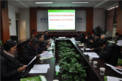 本网讯 2月7日下午,农田生态保育与污染防控安徽省重点实验室召开2017年建设和科研进展总结会,重点实验室研究团队主要成员以及相关研究生参加了会议。资源与环境学院副院长谈应权主持总结会。