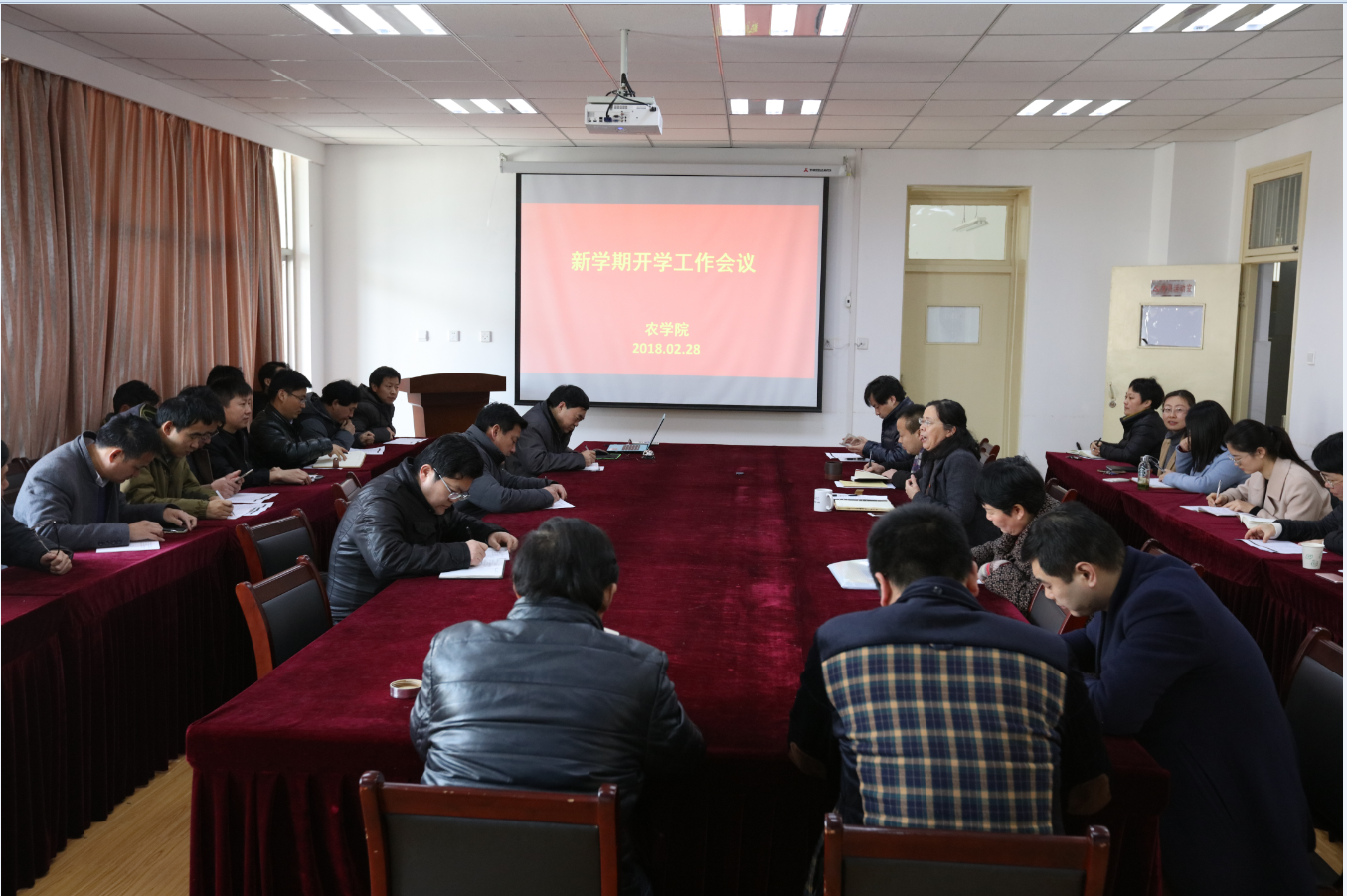 本网讯2月28日下午,农学院召开全院教职工大会部署新学期工作。会议由院党委书记汪凤莲主持,学院领导班子成员及全院教职工参加会议。