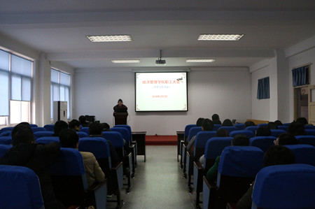 本网讯3月2日,经济管理学院在经管楼321召开了全体教职工大会,就开学工作和2018年重点工作作了谋划和安排。院党委书记王伟主持会议。
