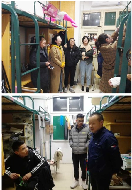 3月4日晚,农学院全体辅导员在汪凤莲、鄢高翔的带领下到学生宿舍看望学生,也对学生们进行了新春的问候。在走访过程中,老师们与大家进行亲切交流,询问同学们的假期生活、家庭状况,学习情况以及新学期的打算。叮嘱同学们日常生活一定要注意人身财产安全,杜绝使用各类违章电器,养成良好的生活习惯;勉励大家勤奋学习,加强锻炼。