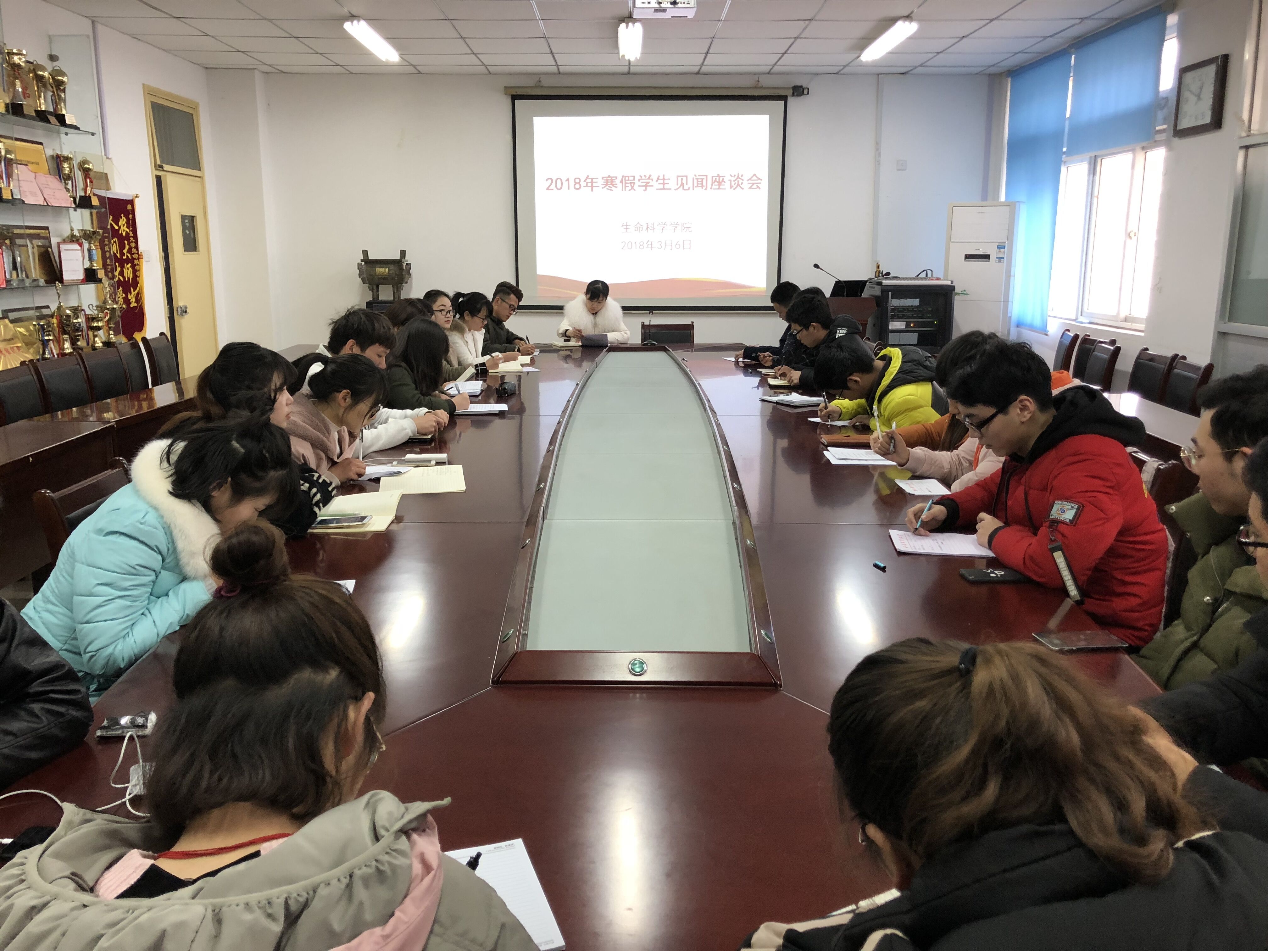本网讯 3月6日中午,生命科学学院在十教216会议室举办2018年寒假见闻座谈会。院学生分会主要学生干部、部分学生党员、班级班长和团支书代表参加了本次座谈会。会议由院团委老师主持。