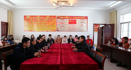 在大畈村,江正君与村干部、驻村工作队详细座谈,了解扶贫脱贫工作实施情况,特别是特色产业发展与乡村振兴计划实施。他表示,学院将发挥学科专业特色与优势,针对村扶贫工作遇到的实际困难,全力支持大畈村特色产业发展,实现大畈村脱贫致富。
