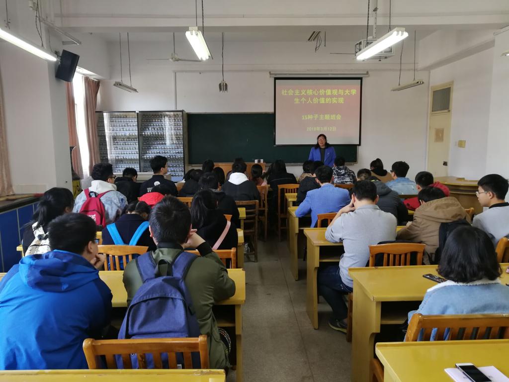 本网讯为全面贯彻落实党的十九大精神和高校思政会议精神,进一步培育和践行社会主义核心价值观。3月12日下午,农学院2015级种子科学与工程专业开展“社会主义核心价值观与大学生个人价值的实现”主题班会。班会伊始,院党委书记汪凤莲围绕社会主义核心价值观关键词,结合自身人生经验和学习感悟,鼓励同学们用实际行动弘扬社会主义核心价值观。她指出,大学第三年是确定人生路的重要节点,大家一定要认真思考自己以后要去做什么、要为社会带来什么。同时,要求大家努力把社会主义核心价值观的要求变成日常的行为准则,进而形成自觉奉行的信念、理念。