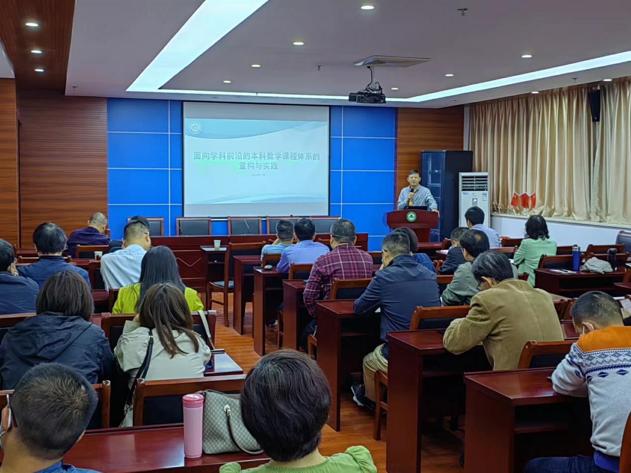理学“基石”名师大讲堂分别邀请了国务院学位委员会数学学科评议组成员兼秘书长、上海市数学会理事长、复旦大学陈猛教授和江苏省政府统计与大数据研究院院长、统计学一级学科博士点负责人、南京审计大学林金官教授,为学院教师作题为《面向学科前沿的本科数学课程体系的重构与实践》和《统计学一级学科博士点建设情况》的专题报告,帮助教师更好地应对本科基础课程体系建设面临的问题与挑战,引导教师针对基础课程内容革新、体系改革、模式创新等,更好地面向学科前沿开展本科基础课程体系重构与实践。