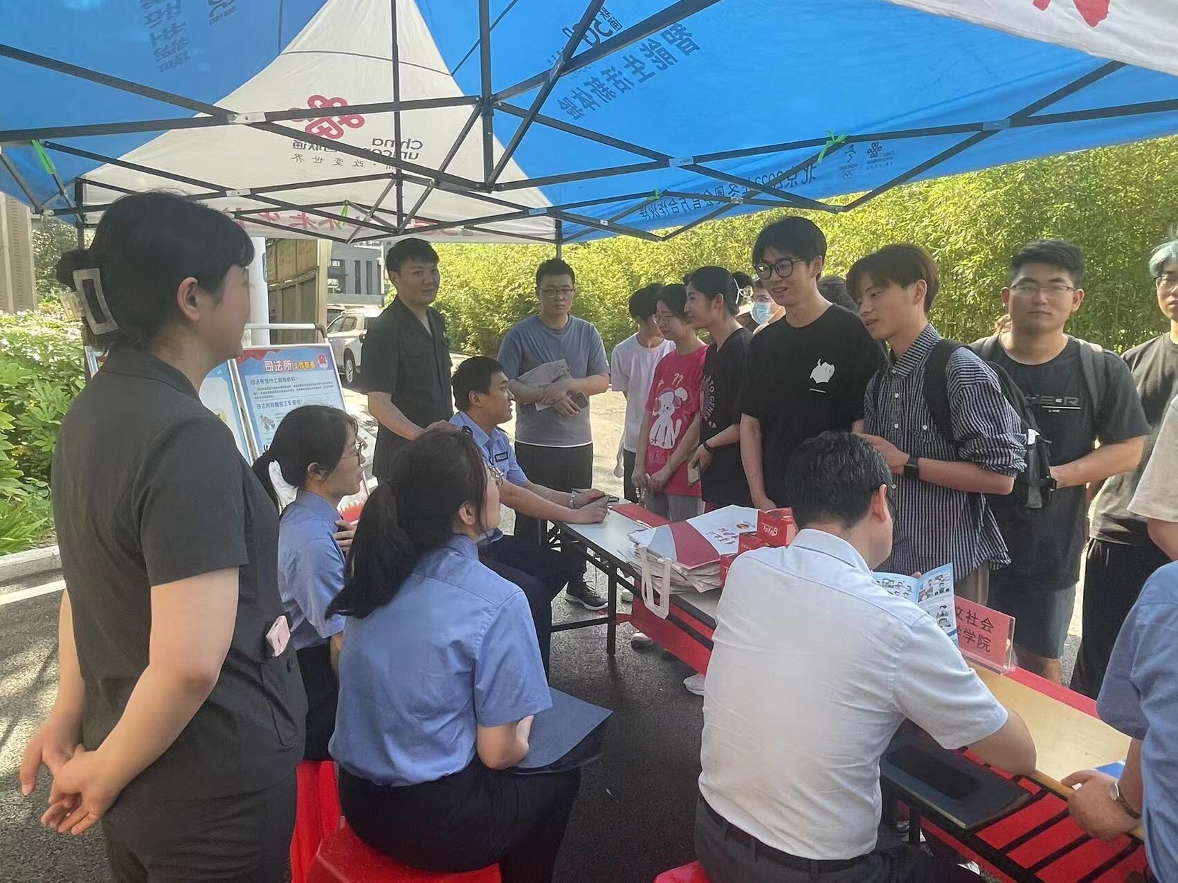 座谈会后,相关人员在校园开展“普法进校园,青春伴法行”普法宣传活动,10余名法律工作者就在校大学生关心的法律问题答疑解惑,发放宣传手册,呼吁当代大学生要争当新时代中国特色社会主义法治的忠实崇尚者、自觉遵守者、坚定捍卫者,自觉为法治校园和文明校园建设贡献力量。(作者:石俊峰 一审:张智勇 二审:黄洪雷 三审:吴渭)