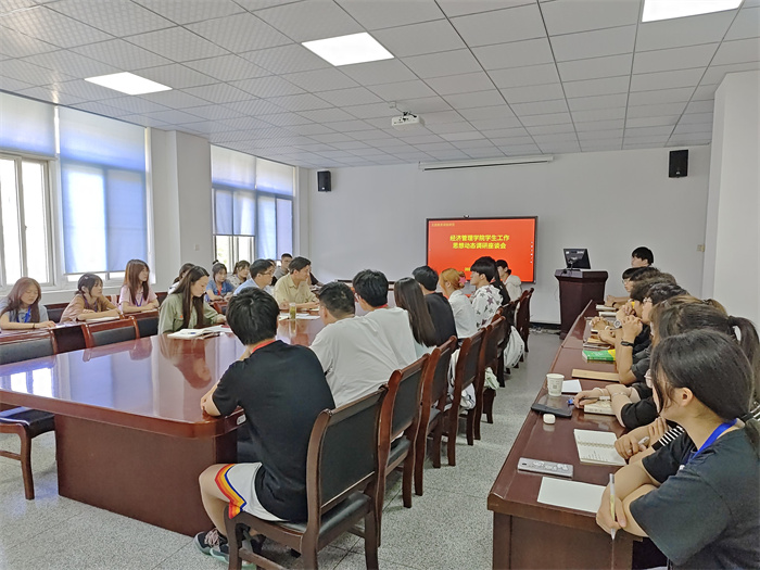 本网讯 为深入开展学习贯彻习近平新时代中国特色社会主义思想主题教育,了解学生思想动态和工作状况。5月19日下午,经济管理学院于304会议室召开学生社团工作调研座谈会。经济管理学院党委副书记、纪委书记、副院长吴国卿出席,团委负责老师和学院学生分会工作人员参加本次会议,会议由团委负责老师主持。