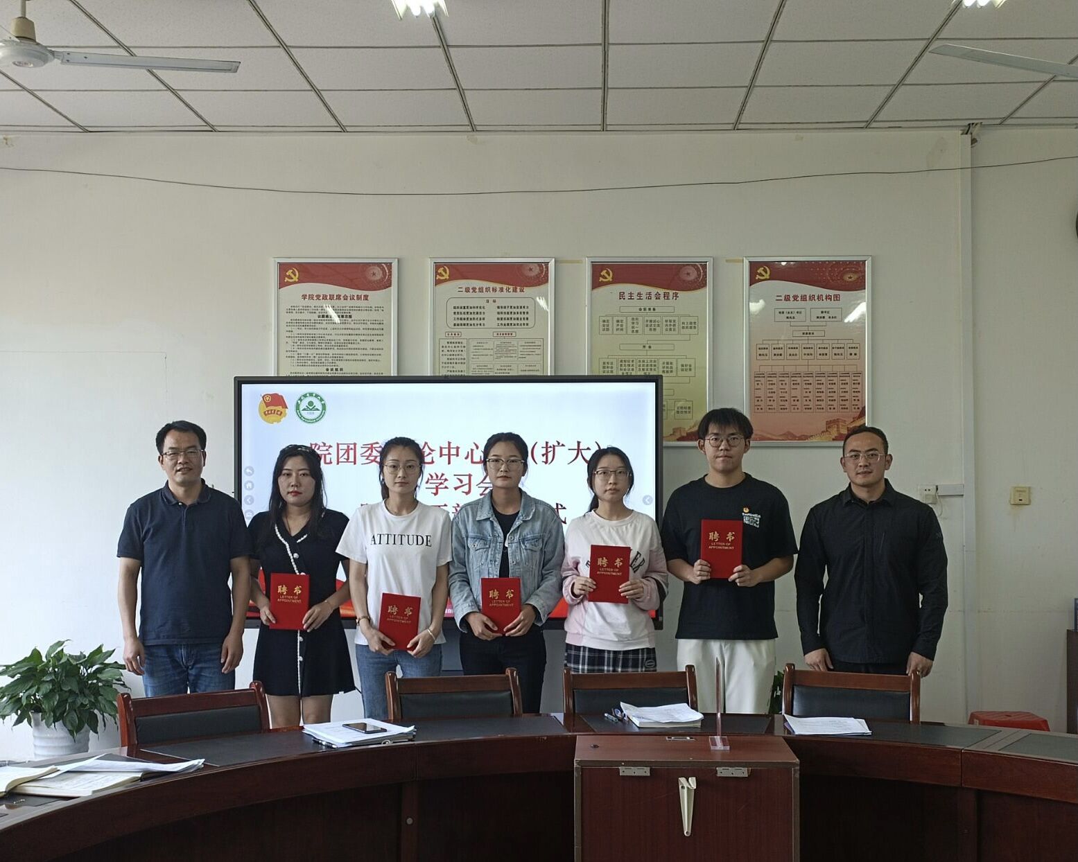 吴永红为学院团委干部颁发聘书并讲话。他指出,青年学生干部要不断提升政治素养,联系自身实际深入学习习近平新时代中国特色社会主义思想,杜绝“两张皮”,充分掌握其中蕴含的马克思主义立场、观点和基本方法,不断丰富学习形式,提升学习成效;要敢于发现问题、解决问题,在工作学习的不断尝试求新中敢想敢为,善作善成;要增强服务意识,提升专业能力,培养自己为同学办实事、办好事、解决问题的能力和水平并在学习工作中不断地完善与提高。