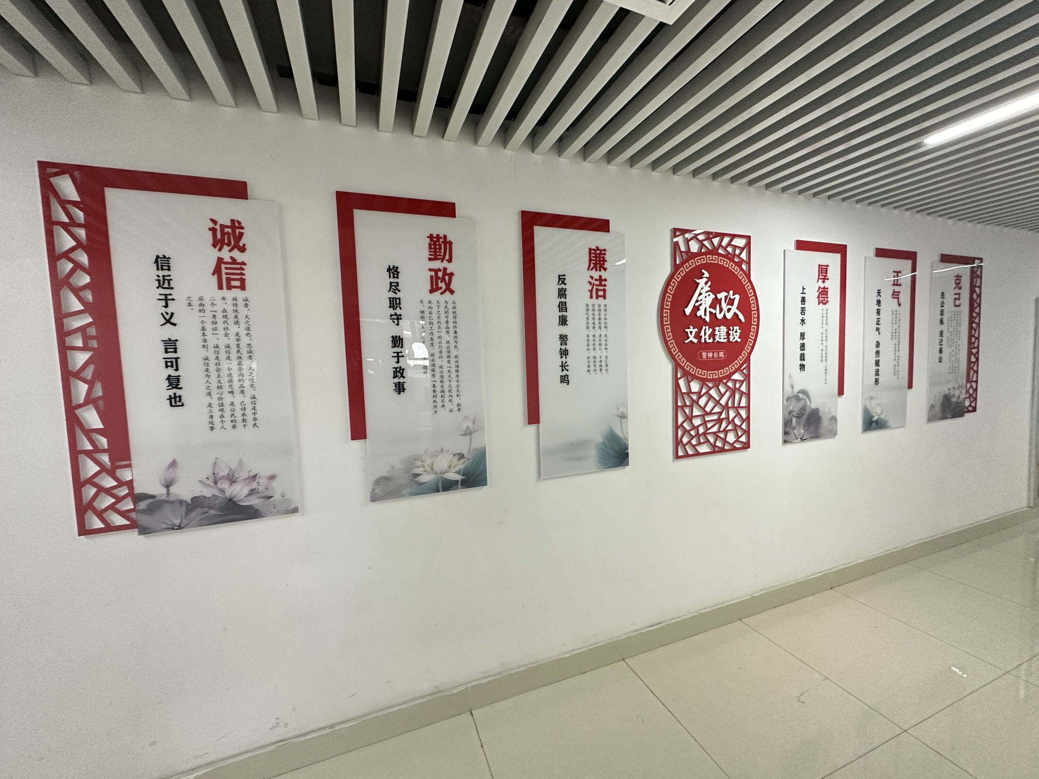 主题文化墙位于中西部综合楼南楼5楼,分为中国精神和廉洁廉政两大版块。中国精神版块让广大师生牢记初心使命,传承红色精神,争做有理想、敢担当、能吃苦、肯奋斗的新时代好青年和“四有”好老师;廉洁廉政版块从中华优秀传统文化中汲取廉洁思想与警言警语让全院师生时时受教育、刻刻受提醒、处处受熏陶,积极营造人人思廉、倡廉、促廉、践廉、保廉的良好氛围。