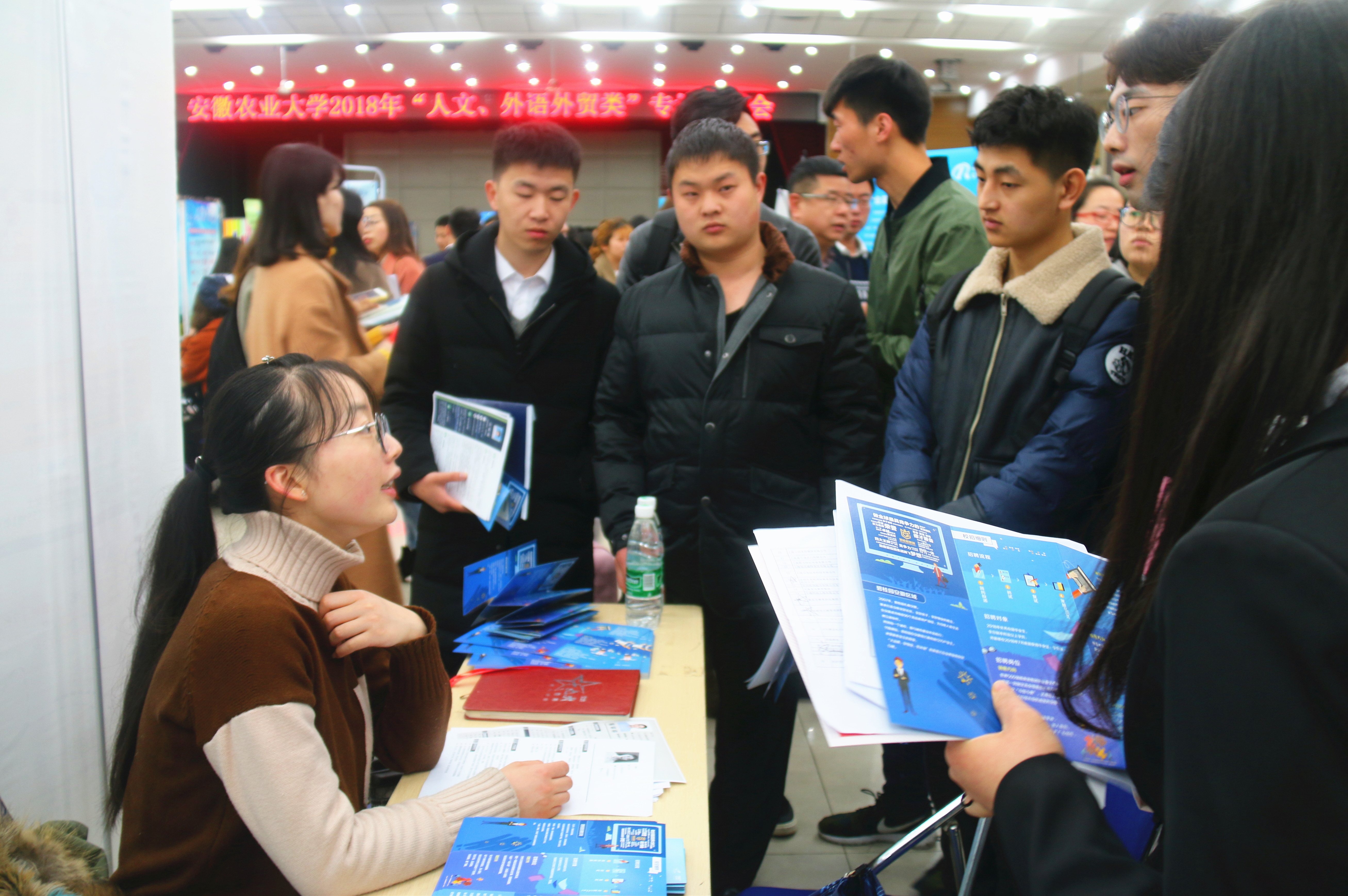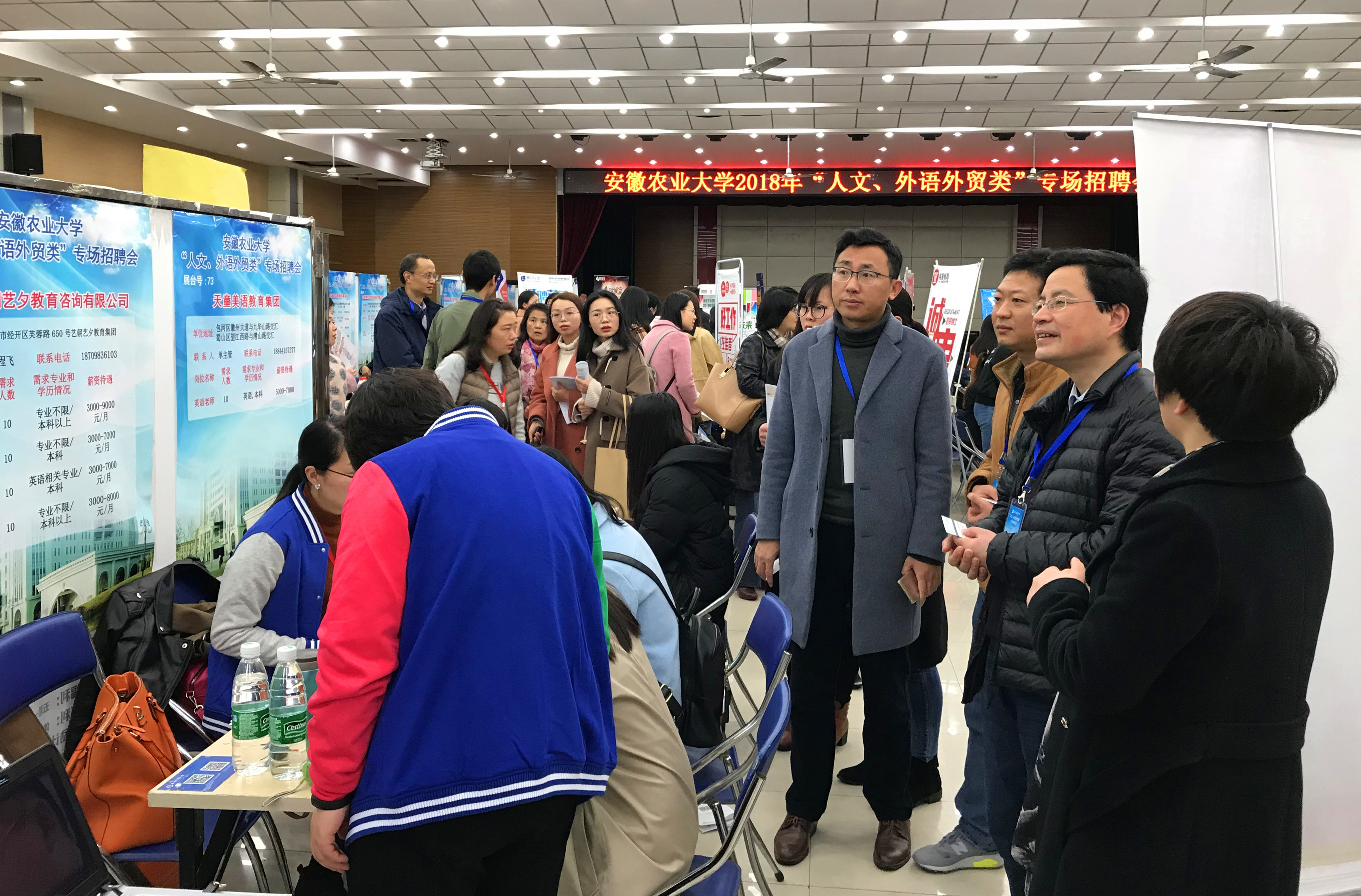 本网讯 3月18日上午,人文社会科学学院和外国语学院联合举办的安徽农业大学“2018年人文、外语外贸类专场招聘会”在欣苑四楼多功能厅顺利举行。校招生就业处副处长沈兆梅及相关学院党政领导到场指导工作。