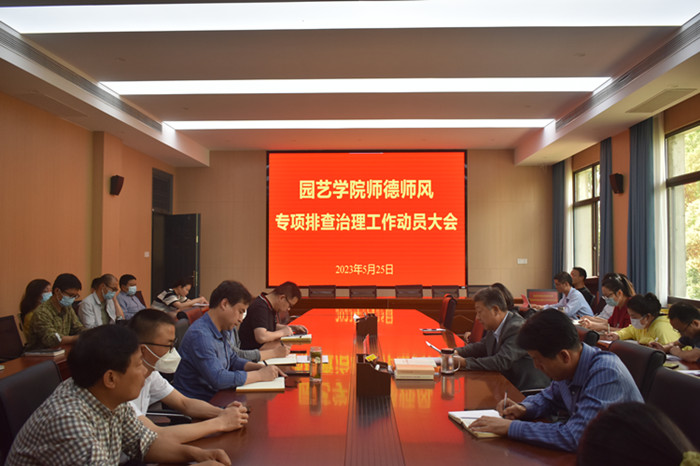 本网讯 5月25日下午,园艺学院在二教326召开全院教职工大会,就开展师德师风专项排查治理作动员部署。学院全体教职工参加了会议。