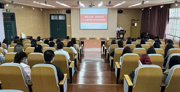会上,方章东以“青春心向党,逐梦再出发”为主题讲授了专题党课,指出,党员同学无论走到哪里都要时时以党章为根本遵循,学习党章、遵守党章、贯彻党章、维护党章,认真履行党员义务,发挥先锋模范作用。他希望毕业生党员提高政治站位,树牢纪律和规矩意识,全面严格要求自己,坚定理想信念,牢记初心使命,在毕业季中当好表率,为全体同学安全文明离校贡献力量;希望毕业生党员能从大学四年中感悟到学习外语的价值和意义,把“讲好中国故事、传播好中国声音,展示真实、立体、全面的中国”的历史使命扛在肩上,记在心里,并为之努力奋斗,成为知农懂农爱农的新时代外语人才。