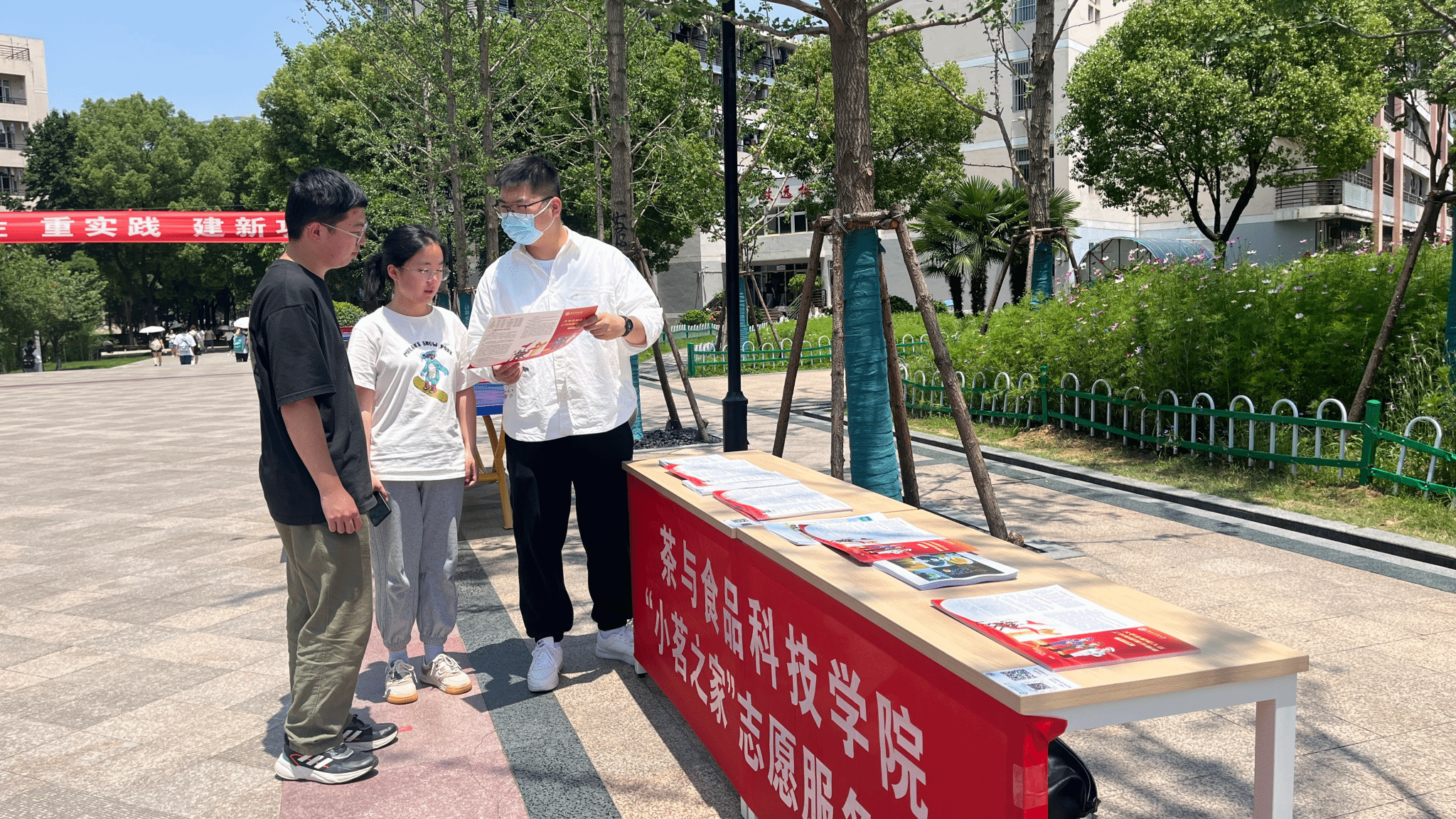志愿服务筑精神价值之魂。弘扬志愿精神,树立时代新风。驻点期间,学院利用特色服务平台——小茗之家服务站,在大学生公寓广场设立志愿者展台。由学院两位值班辅导员带领志愿者团队,为公寓校区大学生发放茶文化知识、饮食健康、征兵入伍、爱国卫生等宣传页,积极进行志愿服务和宣传交流。