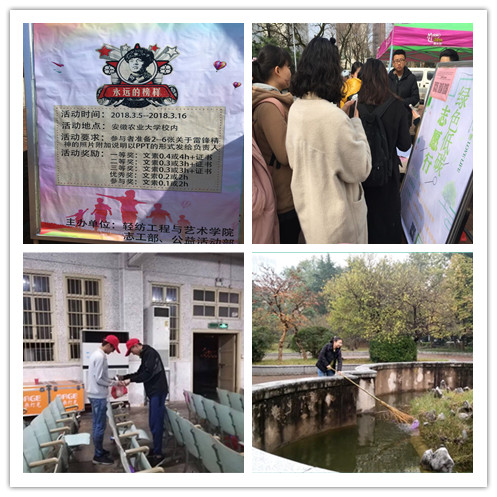 三月,春日融融,柳丝轻扬,光溢花香。轻纺工程与艺术学院广大青年学子怀揣爱心梦想,奔走在校园内外,学习雷锋精神,宣传雷锋精神,践行雷锋精神,开展了一系列丰富多彩、形式多样的学雷锋志愿服务活动,用实际行动弘扬和践行社会主义核心价值观,将雷锋精神的种子撒播在美丽的安农校园里,让学雷锋活动成为春天校园最美丽的一道风景。
