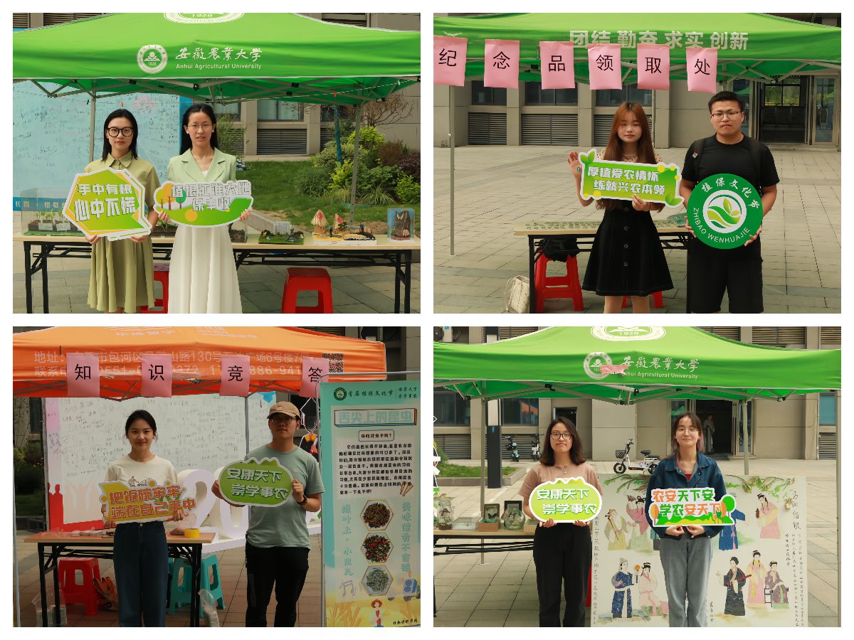 “你吃过虫子吗?”“稻瘟病的传播途径主要是什么?”“长江中下游地区小麦上的三大病害有哪些?”“水稻褐飞虱是什么食性的昆虫?”活动现场热闹非凡,同学们正在参与知识竞答,领取首届植保文化节文创产品。