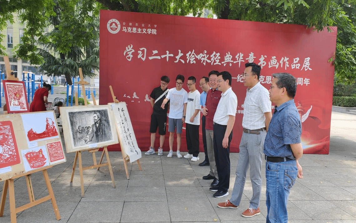 本网讯 镜头定格锦绣景,翰墨怡情颂真理。伟大的名字历经岁月仍受人尊敬,科学的理论跨越时空仍闪烁着真理的光芒。为纪念马克思诞辰205周年,深入开展学习贯彻习近平新时代中国特色社会主义思想主题教育,在全校营造“读原著、学原文、悟原理”的浓厚氛围,马克思主义学院举办了“学习党的二十大 绘咏经典华章——纪念马克思诞辰205周年”系列主题活动,其中“真理的光芒”主题书画展活动于6月1日-6月5日在欣苑小广场顺利进行展览。