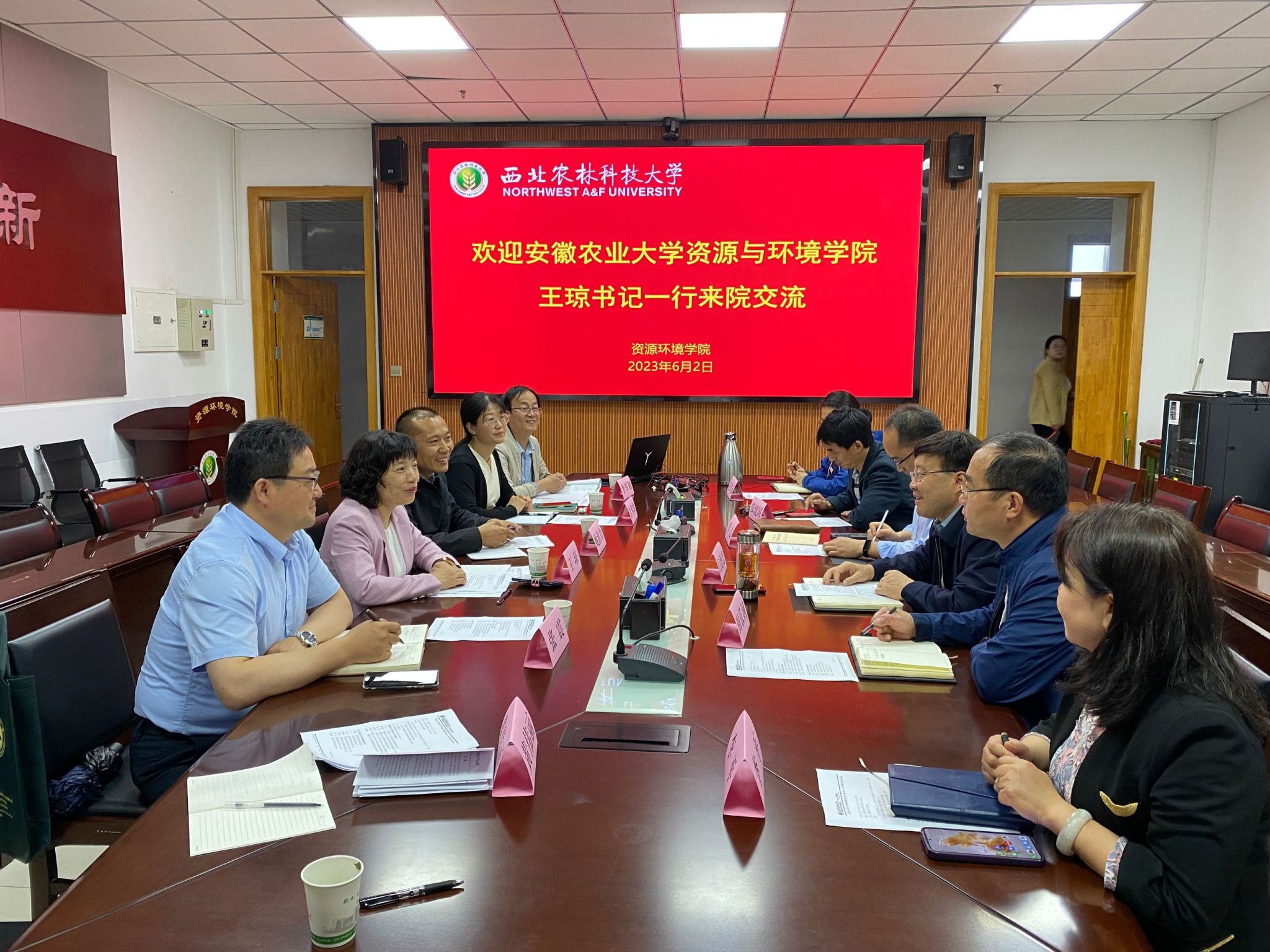 本网讯 为深入贯彻落实习近平总书记关于大兴调查研究的重要指示精神,按照深入开展学习贯彻习近平新时代中国特色社会主义思想主题教育部署和学校有关工作要求,资源与环境学院坚持问题导向,注重调研解题贯穿始终。6月2日,资源与环境学院党委书记王琼率队赴西北农林科技大学资源环境学院调研交流。