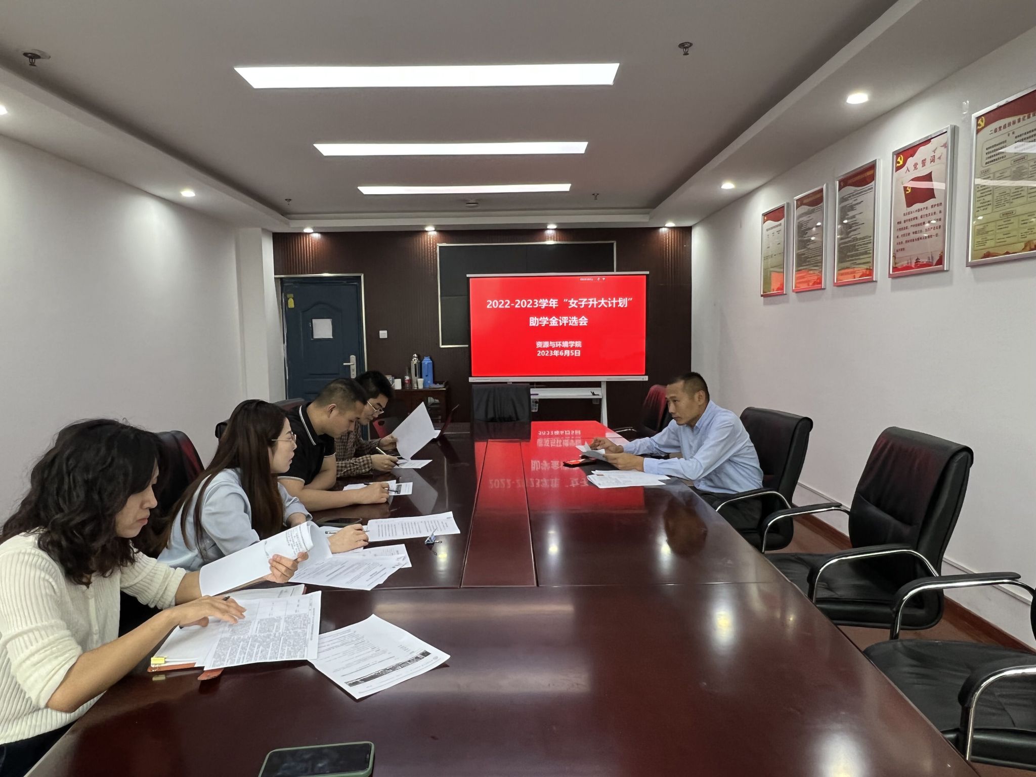 本网讯 根据《关于做好2022-2023学年“女子升大计划”助学金受资助学生推荐工作的通知》要求,为切实帮助家庭经济困难的优秀女大学生完成学业,6月5日上午,资源与环境学院在中西部综合楼南楼506会议室召开“女子升大计划”助学金评选推荐会议。学院党委副书记、纪委书记、副院长姚洪章,资助工作负责老师和辅导员代表参加会议。