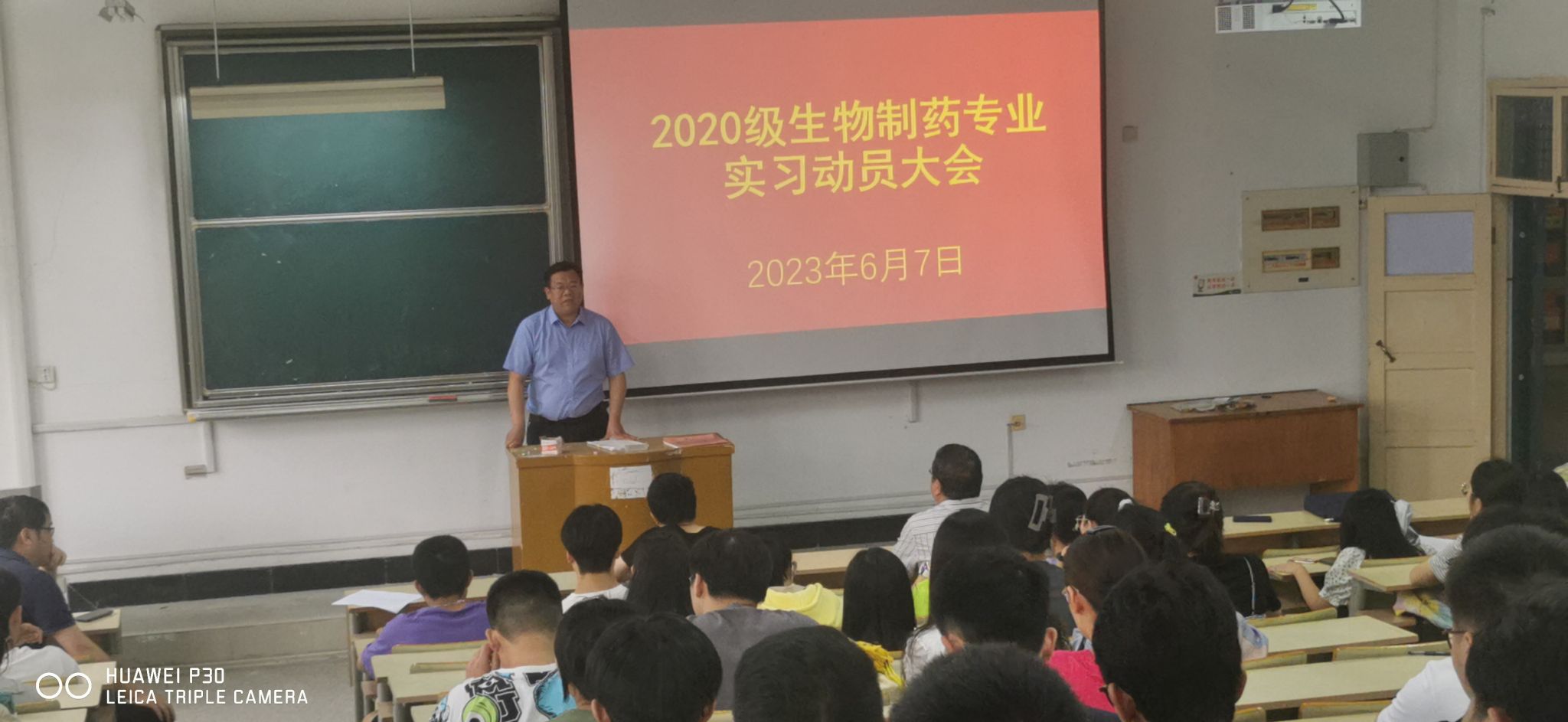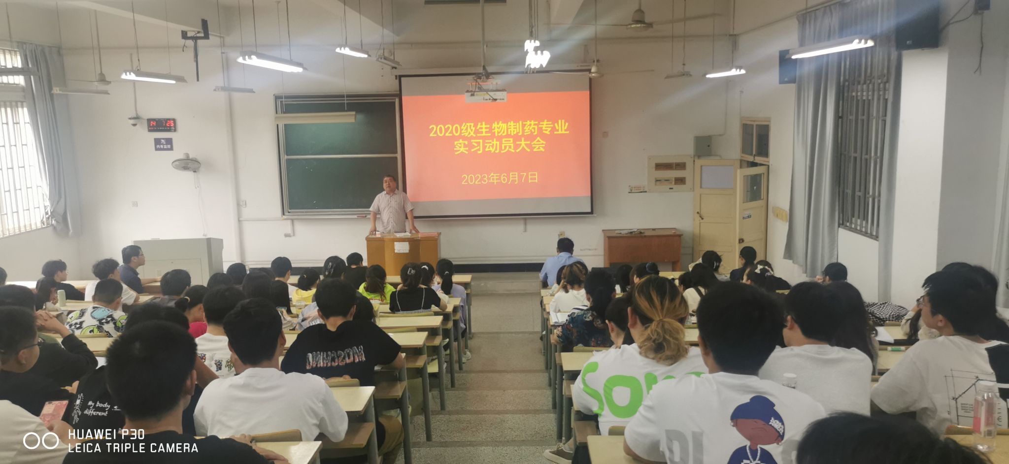 本网讯 6月7日下午,生命科学学院在博学楼224教室召开2020级生物制药专业实习动员大会,院长江海洋、院党委副书记闫大玮、6名实习指导老师和2020级生物制药全体121名学生参加动员大会。