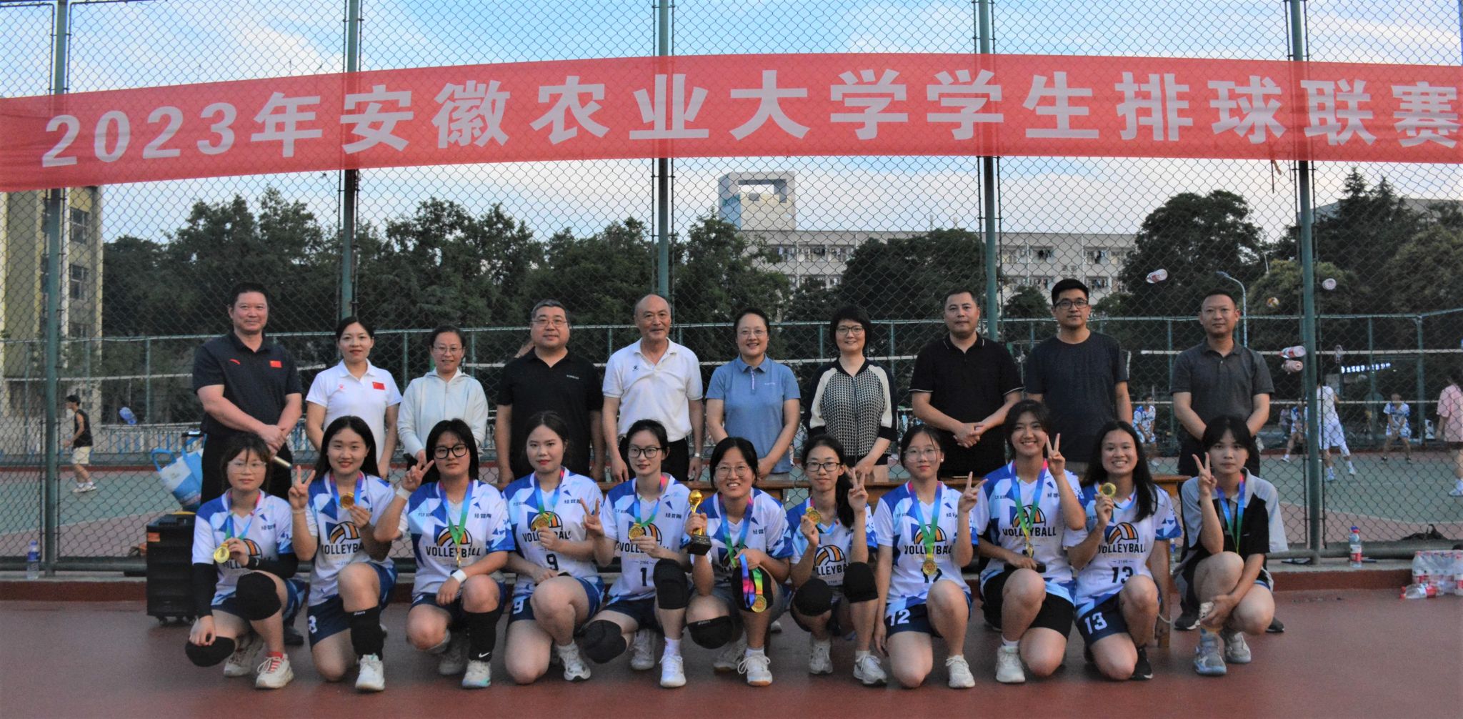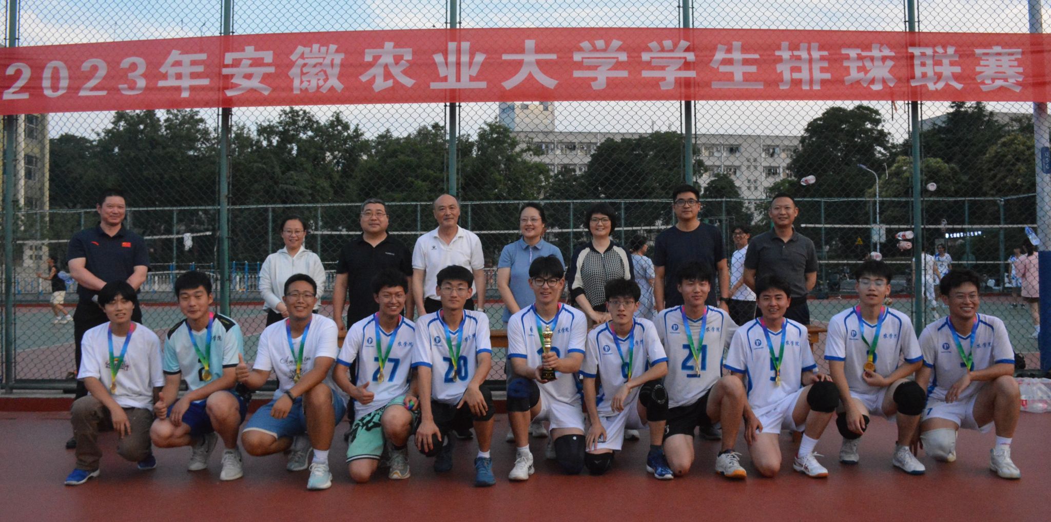 本网讯 6月9日下午,安徽农业大学2023年学生排球联赛在第二运动场圆满落幕。校党委常委、副校长李红,学工部部长姚莉,体育部主任李宏,以及部分学院党委副书记参加了闭幕式。闭幕式由体育部副主任尹维增主持。