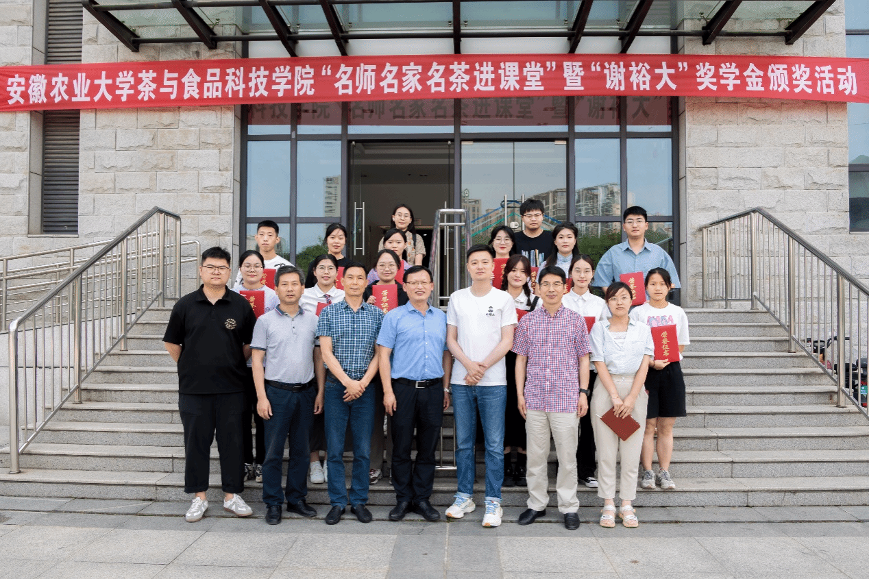 本网讯 6月11日下午,茶与食品科技学院2023年第4期“名师名家名茶进课堂”暨“谢裕大”奖学金颁奖仪式在图书馆第二报告厅举办。谢裕大茶叶股份有限公司总经理谢明之、副总经理桂利权,茶与食品科技学院院长李大祥,2022年度“谢裕大”奖学金获得者、茶学(含茶文化与贸易方向)本科专业同学代表出席颁奖仪式。学院党委副书记夏业鲍主持颁奖仪式。