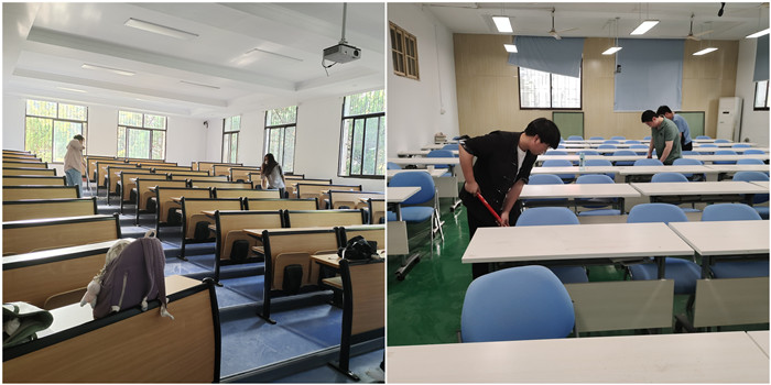 志愿清扫付诸行动。为增强学生的感恩意识,营造干净、整洁、舒适的校园环境,活动期间,学院党政领导带领办公室成员及部分22级学生在二教前后开展了一次责任区环境整治活动,集中清理二教楼后的杂草、垃圾;学院学生会组织值日生和部分国助生利用周末、放学后清扫二教公共教室、学院会议室等公共区域,参与学生共计60余人,帮助学生树立诚信劳动观念,增强了学生的文明意识、卫生意识、环境意识,号召他们从自己做起、从点滴做起,励志做一名感恩社会、服务社会的合格大学生。