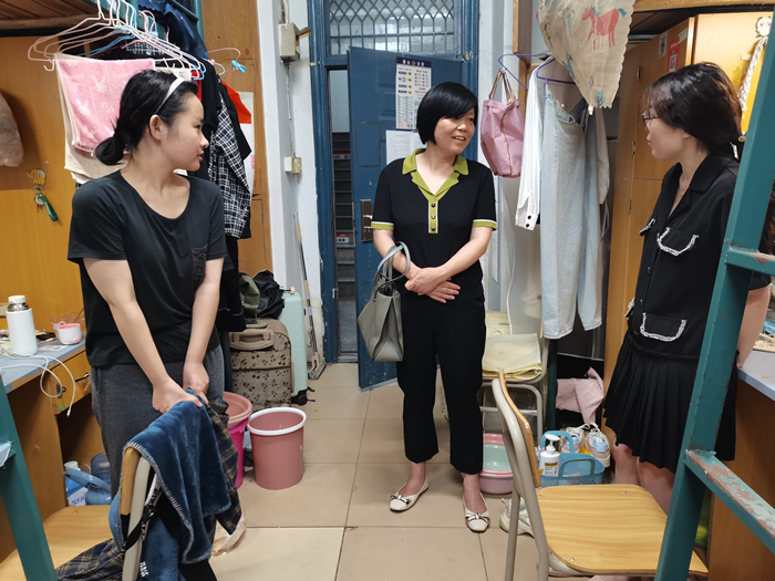 宿舍里不时传出阵阵欢声笑语。学院领导班子成员和辅导员们与毕业生亲切交流,仔细了解毕业班同学们的思想动态、就业情况、生活困难以及未来规划等,叮嘱毕业生要严格按照学校通知要求,做好文明离校各项工作,勉励毕业生要胸怀理想、锤炼品格、脚踏实地、艰苦奋斗,积极努力服务于安徽省“三地一区”建设,到基层、到西部、到祖国最需要的地方建功立业,在乡村振兴的大舞台上绽放青春最绚丽的光彩。