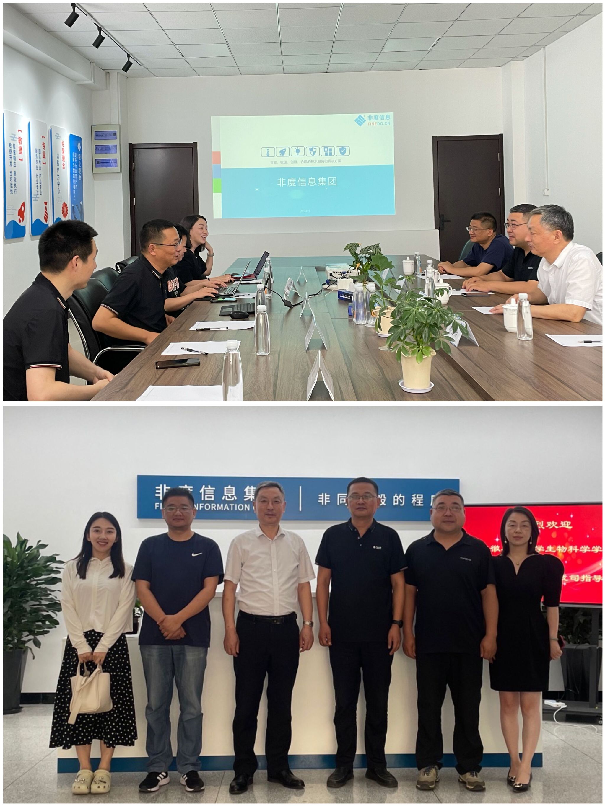 合肥非度信息信息技术有限公司董事长、02届生科校友姚国龙对学院一行的来访表示热烈欢迎,感谢母校心系校友,对校友发展的关注,并详细地介绍了公司概况、主营业务和发展愿景,希望以此次交流为契机,与学院在各方面加强联系、紧密合作。闫大玮表示,学院将为企业发展提供更多人才支持,进一步深化校企合作。甘传鹤对姚国龙校友跨赛道创业的魄力和成绩给予肯定,希望校友企业紧跟国家政策、把握时代发展先机,努力创造更大的社会价值。