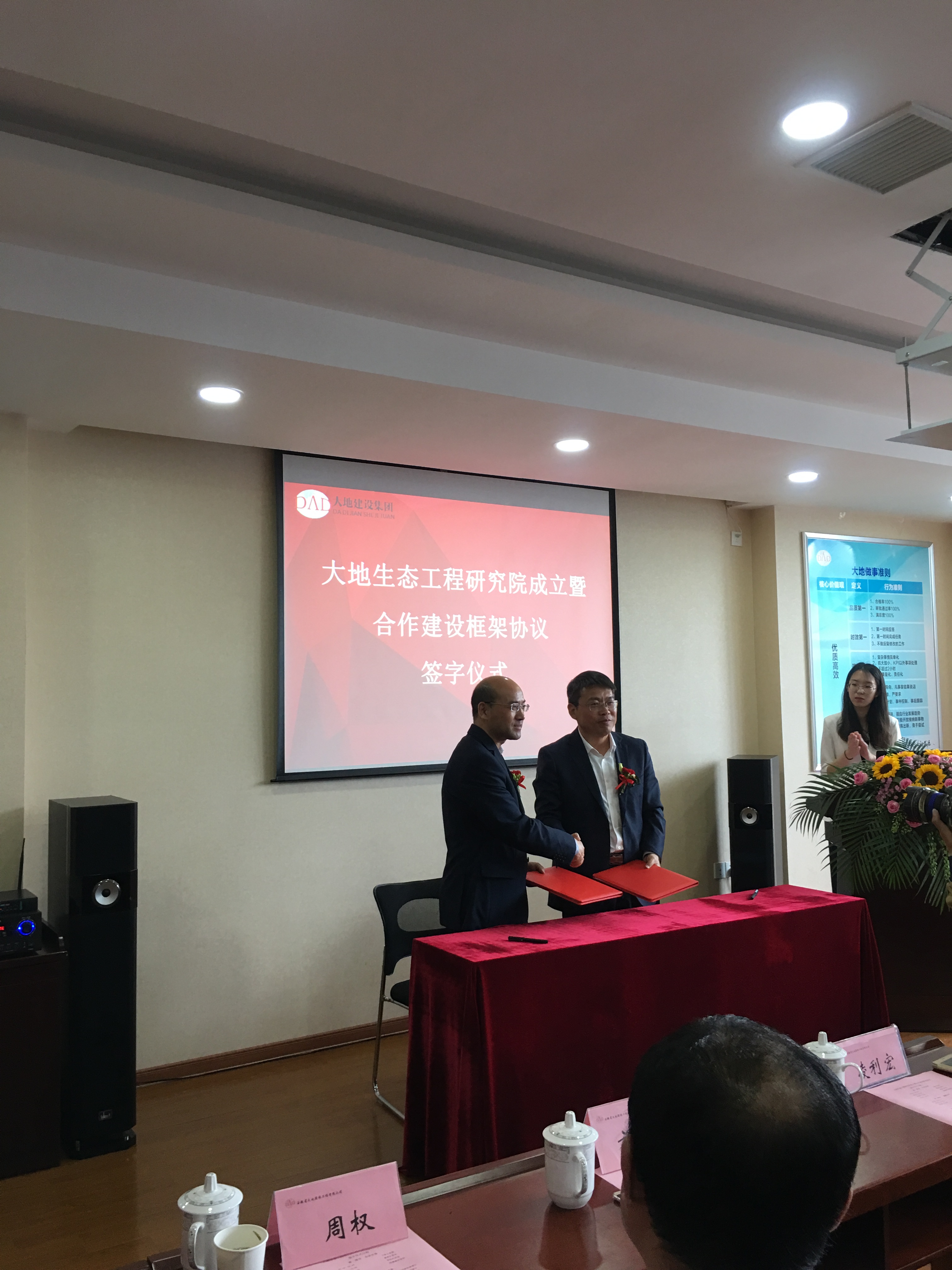 合作洽谈会上,大地园林董事长、园艺学院1992级校友凌利宏从大地生态工程研究院成立目的、科研方向到未来的展望做了具体介绍;方从兵对大地生态工程研究院的成立表示祝贺,并介绍了园艺学院的科研现状,以及校企协同培养人才的基本方案。经过协商,双方在实习基地建设、产学研合作等方面达成了共识,并签订了合作建设大地生态工程研究院的框架协议。