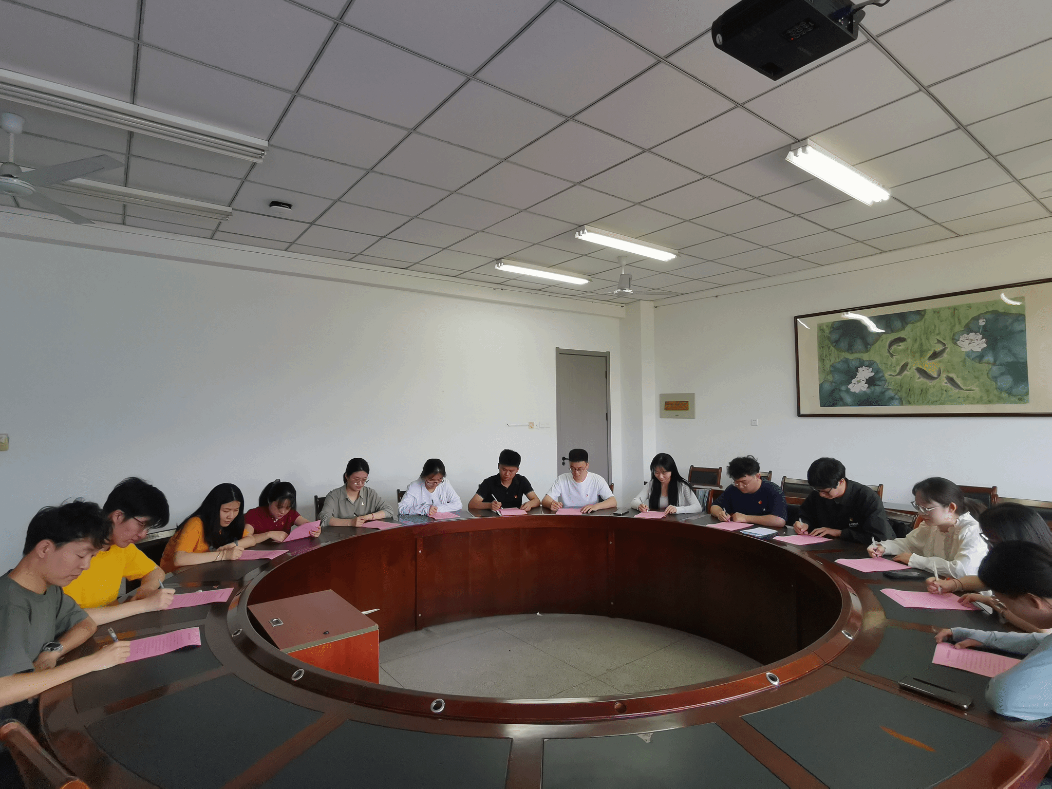 聚焦理想信念,坚定初心使命。毕业生党员在朱明庚同学的带领下重温入党誓词。“我志愿加入中国共产党,拥护党的纲领,遵守党的章程,履行党员义务......”全体党员佩戴党徽,举起右手,握紧拳头,用铿锵有力的声音表达了对党的无限忠诚和为共产主义奋斗终身的坚定决心。宣誓后,毕业生党员签署书面承诺书。一名党员就是一面旗帜,大家承诺在以后的学习、工作、生活中永远保持党员形象,遵守政治纪律、组织纪律、工作纪律和廉政纪律,保持党员的先进性和纯洁性。