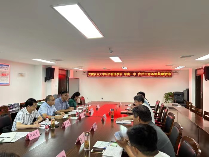 本网讯 为扎实做好学院2023年招生工作,不断开拓学院优质生源市场,确保学院生源质量稳定可持续发展,6月27日,经济管理学院党委书记赵智,院党委委员、副院长田涛,专职辅导员代表等赴阜南一中开展招生宣传。阜南一中党委书记、校长李进,副校长杨翠萍,副校长丁宗,副校长黄豹以及各年级主任等多人参加。