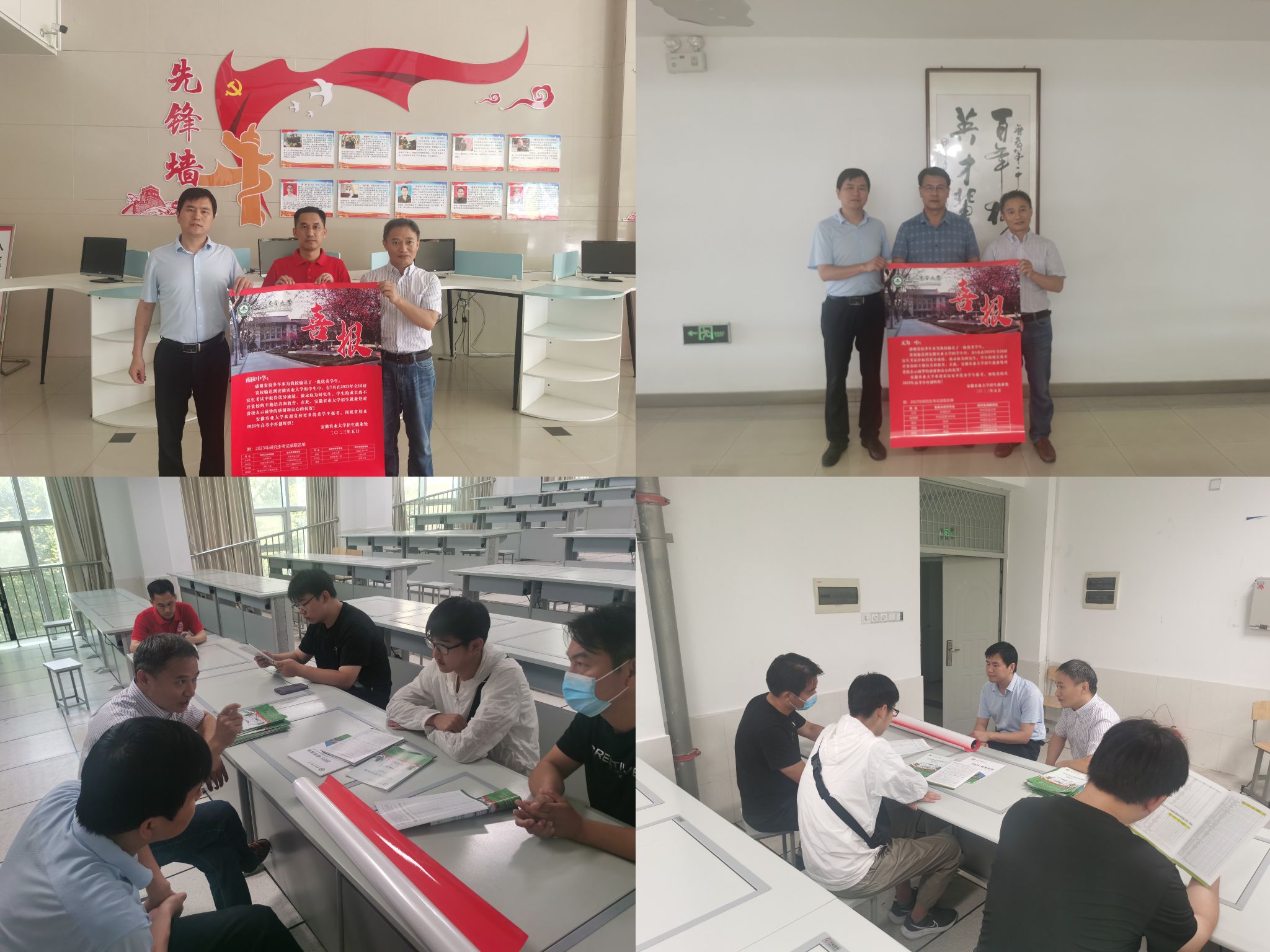 学院党政领导分别前往芜湖一中、无为一中、南陵中学、广德中学、天长中学、滁州二中等开展招生宣传工作,并将考研喜报送往各生源基地中学。为考生和家长及时提供了我校第一手招生信息,也为 他们了解学校、专业进而报考我校提供了极大便利。