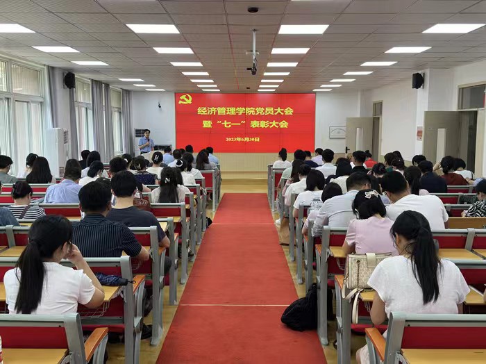 本网讯 为庆祝中国共产党成立102周年,激励学院全体师生党员以更强烈的担当、更积极的作为,推动学院各项事业高质量发展。6月30日下午,经济管理学院召开党员大会暨“七一”表彰大会。学院党委委员、全体教职工党员、学生新党员代表参加了此次会议。