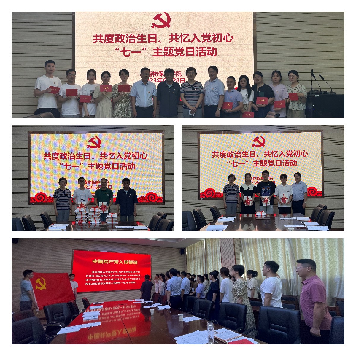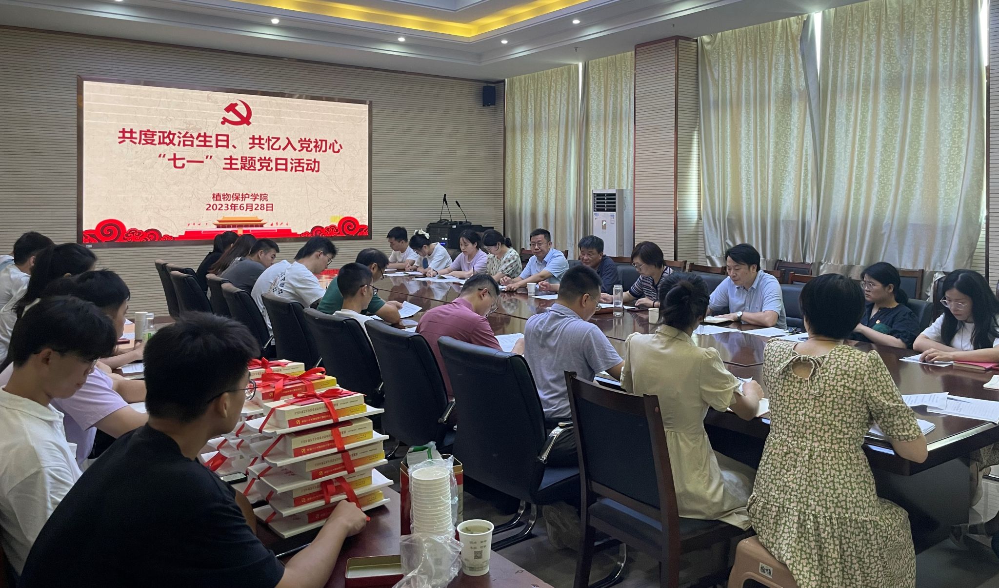 师生共忆初心,勇担强农使命。6月28日上午,学院举行“七一”主题党日活动暨共度政治生日座谈会,邀请全省“最美共产党员”丁克坚与师生畅谈入党初心以及入党以来个人事业发展中的困难、机遇与挑战,尤其谈到如何带领团队在植物病害流行和病害控制技术研究方面开展科技攻关与成果转化,助力农民脱贫致富的生动事迹,值得每一位新时代植保人学习借鉴。与会师生也积极交流入党初心,结合主题教育期间学习收获和体会,谈到以后如何在日常学习、生活及推动事业发展中以党员先锋为榜样做出积极努力。丁克坚老师带领新发展党员入党宣誓、与会人员重温入党誓词;与会领导老师党员为6、7月入党师生党员过集体政治生日,并给新发展党员佩戴党徽,赠送党章、《习近平新时代中国特色社会主义思想专题摘编》、《二十大学习专刊》、二十大辅导读本等。
