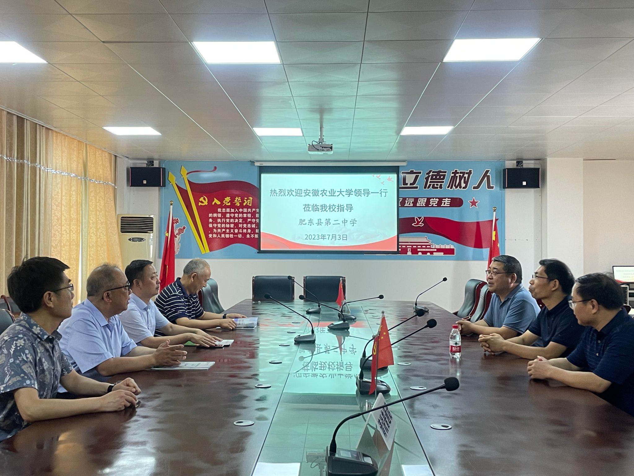 座谈会上,曹雷、闫大玮分别就安徽农业大学的办学特色、师资力量、学科优势、科研前沿领域和人才培养模式,以及2023年招生情况等方面进行了详细介绍。肥东二中校长朱正坤、党委副书记张正杰等主要校领导对学院一行来校开展宣传、回访表示了热烈欢迎,详细介绍了肥东二中的基本情况、育人业绩及未来的发展规划。双方在建立交流机制、保持合作互动、谋求共同发展、竭诚服务学生等方面进行了深入的交流。