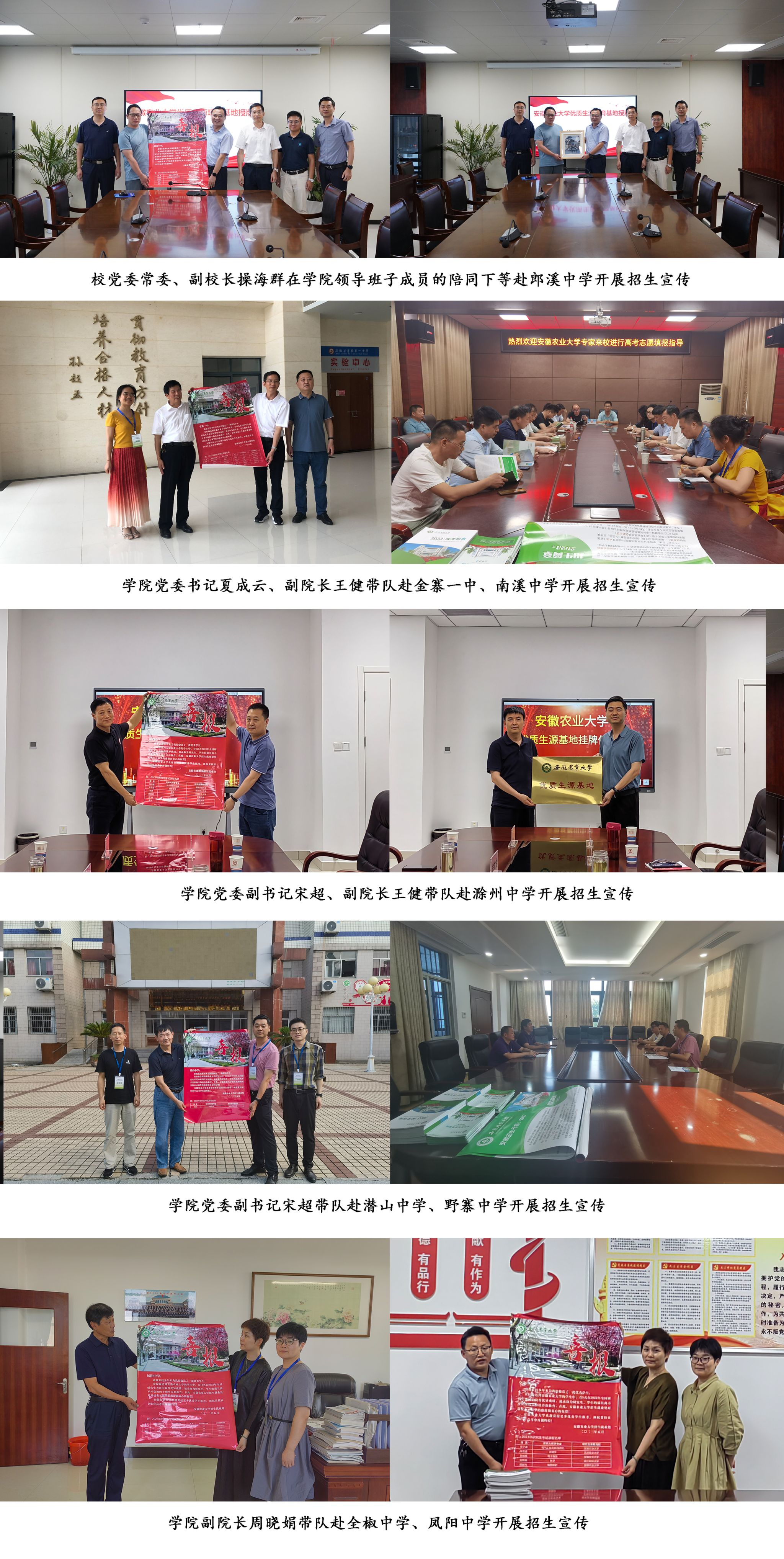 高频走访,座谈交流。学院累计赴滁州中学、郎溪中学、金寨一中、南溪中学、潜山中学、野寨中学、凤阳中学、全椒中学等高中,开展优质生源基地回访和本科招生宣传。6月28日,校党委常委、副校长操海群在学院领导班子成员陪同下赴郎溪中学开展优质生源基地回访,并赠送考研喜报和学院特色文创作品。