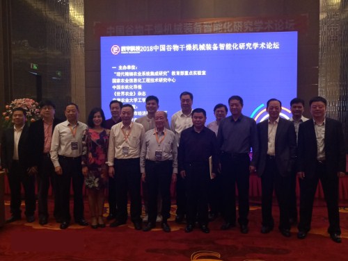 本网讯4月11日,由安徽农业大学工学院、“现代精细农业系统集成研究”教育部重点实验室、国家农业信息化工程技术研究中心、中国农机化导报、《世界农业》杂志5家单位共同主办的2018年度中国谷物干燥机械装备智能化研究学术论坛在安徽六安召开。会议围绕“谷物干燥机械装备智能化”主题进行充分交流与探讨。中国工程院院士、中国农业大学教授汪懋华,中国工程院院士、国家农业信息化工程技术研究中心主任赵春江,安徽农机装备应用技术产业体系首席科学家、安徽农业大学工学院院长曹成茂教授,中国农机工业协会会长陈志,中国农机化学协会会长刘宪,农机化导报主编刘卓,中国农业大学杨敏丽教授、刘刚教授,行业主管部门领导,安徽辰宇机械科技有限公司董事长段贤伍等企业家,工学院相关老师等180余人出席了本次论坛。