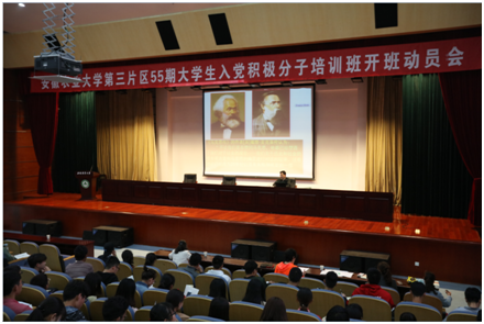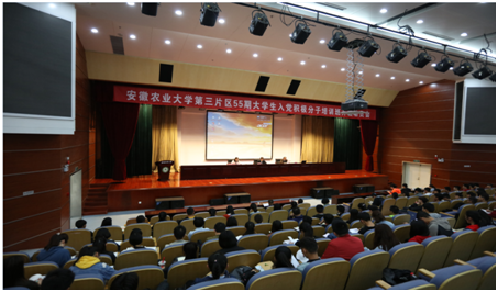 本网讯 4月13日下午,安徽农业大学第三片区55期党校培训班开班动员会在校图书馆一号报告厅举行,宣传部部长、生命科学学院党委书记朱绍友,信息与计算机学院党委书记曹俊,农学院党委书记汪凤莲、副书记鄢高翔,分党校班主任出席会议,第三片区55期党校全体学员参加了培训。会议由汪凤莲主持。
