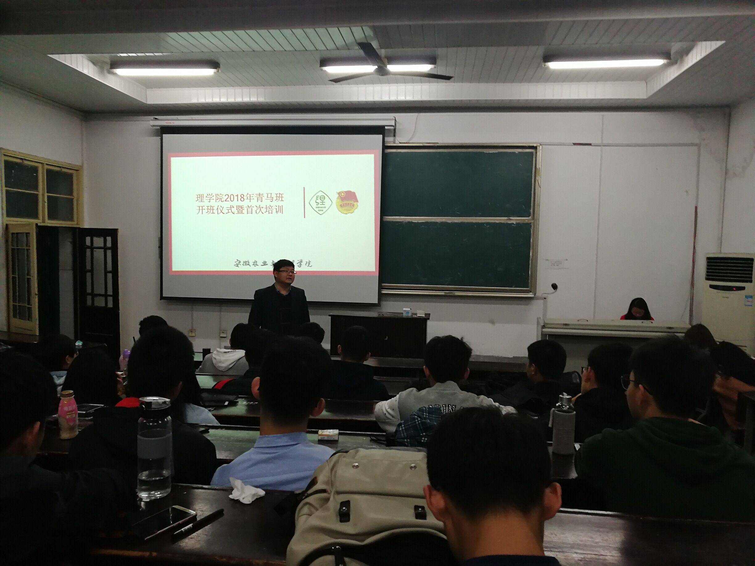 本网讯4月13日晚,理学院在二教247教室举行2018年青马班开班仪式暨首次培训。学院党委副书记、副院长韩弥明出席本次活动,开班仪式由学院团委老师王燕主持,44名学生骨干参加开班仪式。