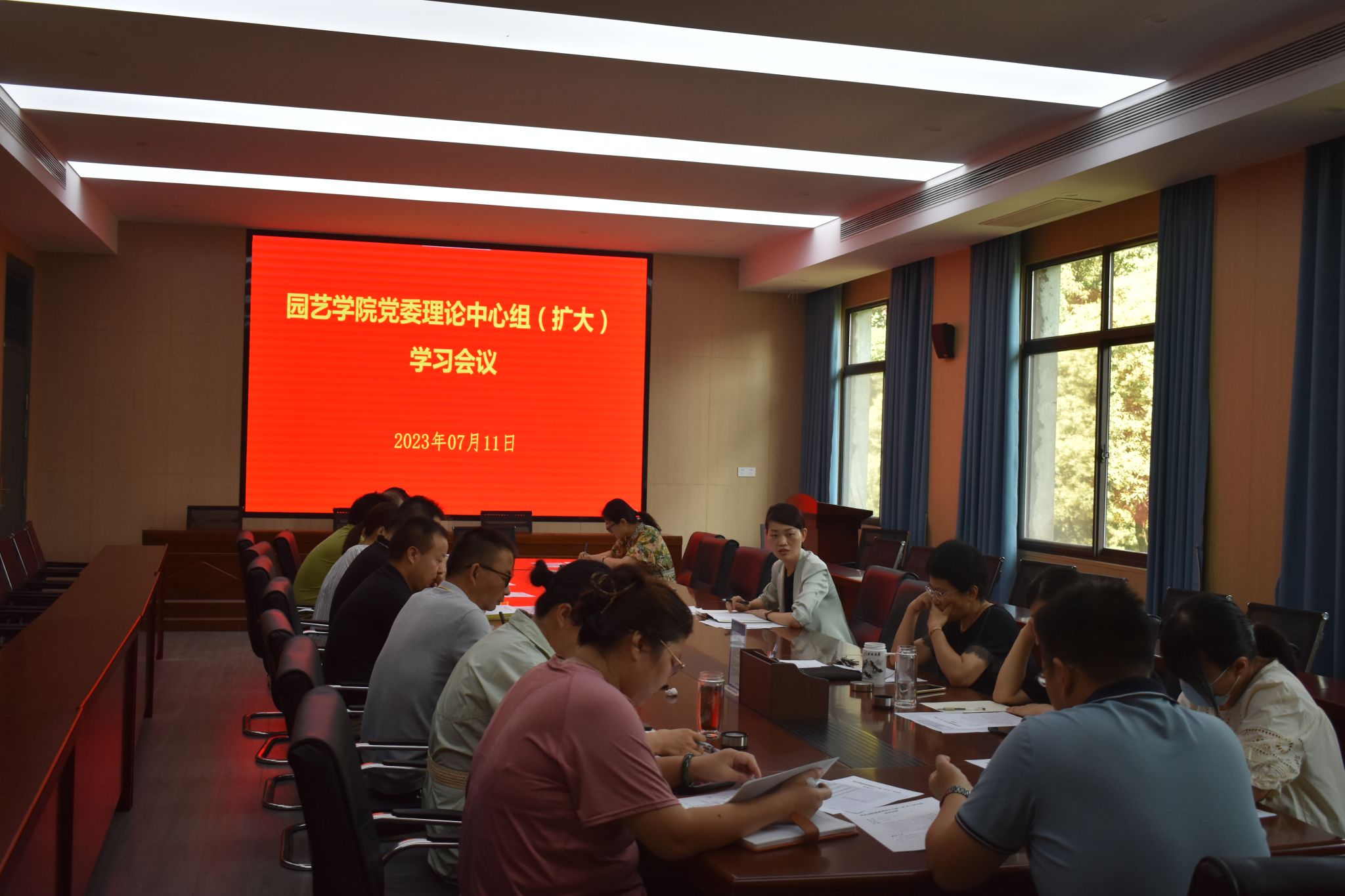 本网讯 7月11日,园艺学院召开党委理论学习中心组(扩大)学习会,专题学习省委书记韩俊同志来校调研讲话精神和校党委常委会(扩大)会议精神,研究部署贯彻落实工作和暑假工作。学院党政领导、党委委员、副科以上干部、支部书记、系主任等参加了会议。会议由院党委副书记(主持工作)赵冠艳主持。