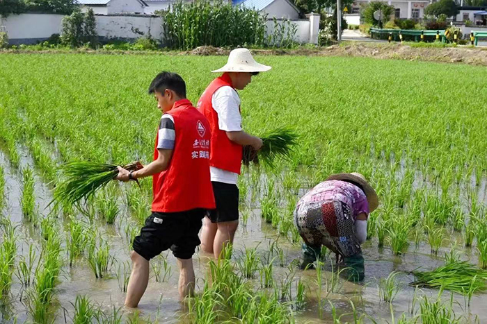 投身志愿服务,青春筑梦未来。在宿州市港利小学,暑期“三下乡”实践团队开展了“志愿少年 文明埇桥”暑假志愿服务活动,带着小朋友们参观当地博物馆,赠送小礼物,在实践中展现青春风采;在泾县云岭镇长园村晨民文化乐园,组织当地小学生开展学娱辅导,并通过游戏的方式,让孩子们“在玩中学、学中玩”,寓教于乐、体验快乐学习;在滁州市南谯区章广镇的太平集村,学院暑期“三下乡”实践团队的同学们协助当地腿脚不便的老人进行水稻插秧,从实践中感受劳动的真谛,体会劳作的辛苦与粮食的来之不易。