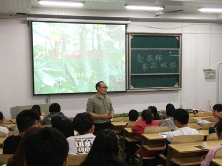 4月21日晚,陈国户结合果蔬嫁接的视频、图片为大家展开培训。他从嫁接的定义、原则和要求、技术方法及注意事项等方面进行详细的介绍,深入浅出地为大家讲解了果蔬嫁接相关知识。交流中,陈国户走进学员中间边解答学生们提出的问题,边亲自示范操作,认真指导学生嫁接的手法技巧,现场气氛热烈。