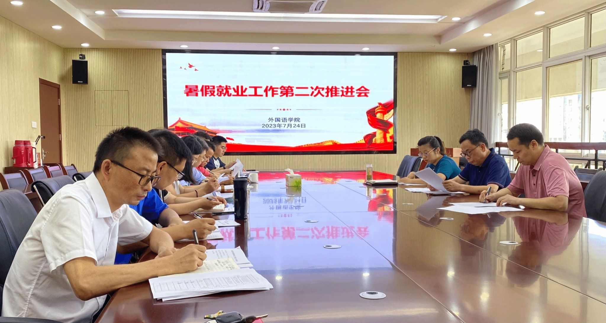 会议听取了各系(部)和班级自《外国语学院2023届本科毕业生暑假期间就业工作推进方案》发布以来就业工作进展情况的汇报,就目前就业工作存在的困难进行了深入的讨论,并对学院下一阶段的就业工作进行了详细安排。(作者:张文静 一审:姬惠惠 二审:何如海 三审:周晓璇)