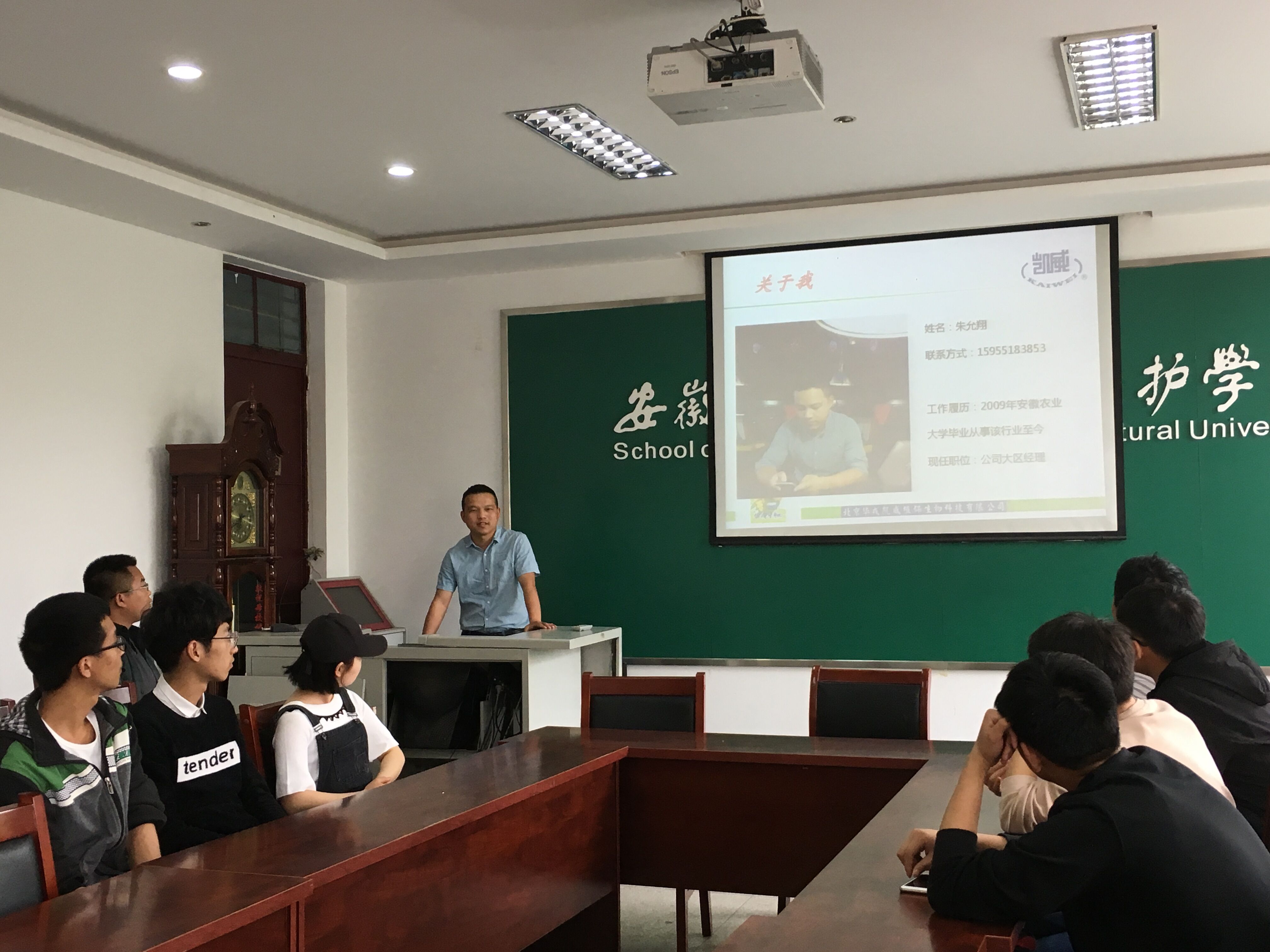 本网讯4月26日下午,北京华戎凯威植保科技有限公司在植物保护学院334会议室举办小型专场宣讲会,来自学院18届植物保护、动植物检疫及其他相关农学类专业近30位毕业生同学参加宣讲。