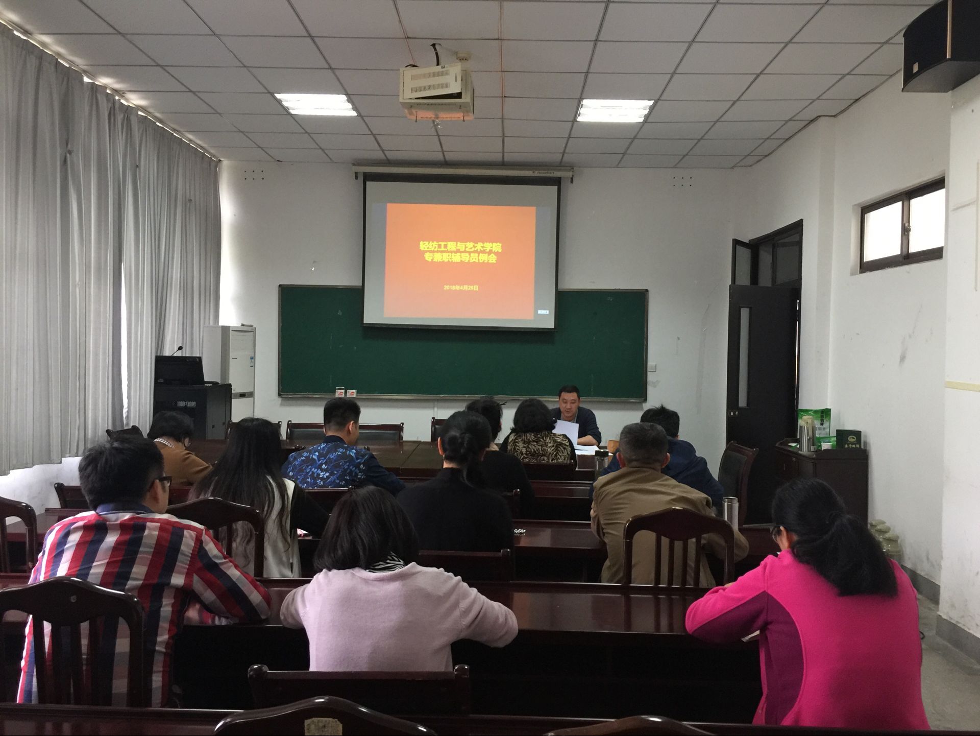 本网讯4月25日,轻纺工程与艺术学院在学院会议室召开专职辅导员工作例会,会议由院党委副书记吕剑秋主持,学院全体专兼职辅导员参加了此次会议。