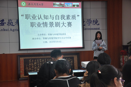 本网讯 5月3日中午,资环学院在十教418室举行职场情景剧大赛。通过初赛的精彩角逐,共有14组同学进入学院决赛。学院团委老师、院学生会主席等担任本次大赛的评委。