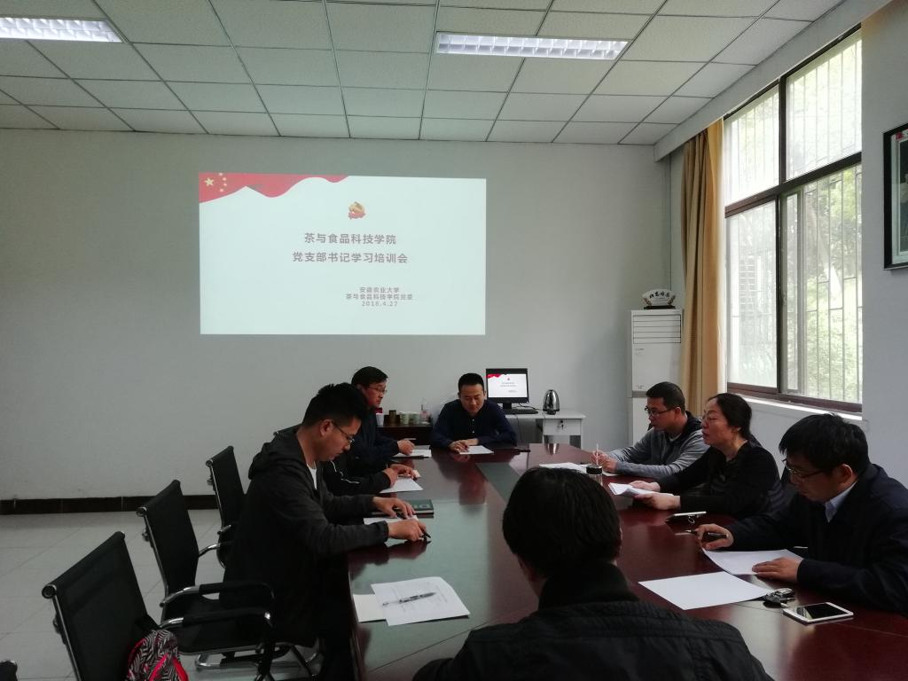 本网讯 4月27日上午、5月2日下午,茶与食品科技学院专门召开两次党支部书记和党务骨干学习培训会。学院各教工党支部书记、学生党支部书记和党支部委员参加会议。会议由院党委书记崔云主持。